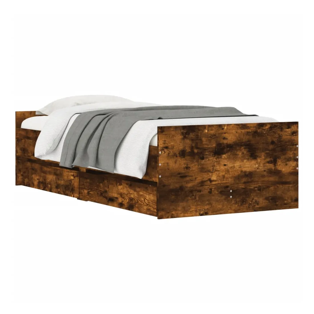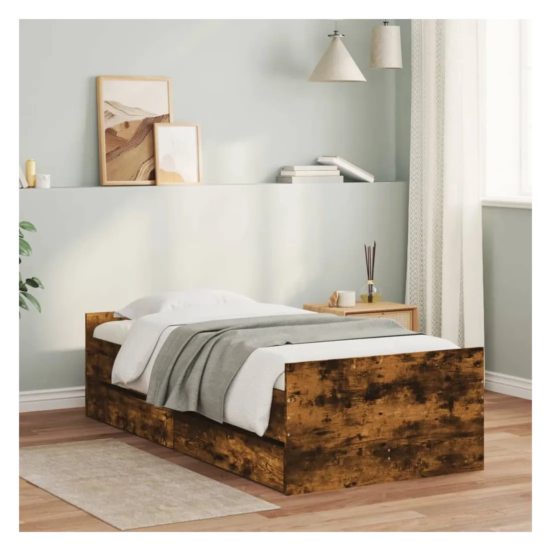Ajoutez une touche moderne à votre chambre à coucher avec ce cadre de lit avec tiroirs ! Il apportera une touche pratique et décorative à votre espace de vie. Matériau durable : le cadre de lit est fabriquée en bois d'ingénierie. Le bois d'ingénierie est d'une qualité exceptionnelle avec une surface lisse et présente également de la résistance, de la stabilité et de la résistance à l'humidité.Lattes robustes : les lattes de contreplaqué assurent une bonne répartition du poids, garantissant que le matelas reste en place à chaque torsion de votre corps pendant le sommeil.Fonction de rangement : les tiroirs de lit inclus offrent suffisamment d'espace de rangement pour ranger vos articles essentiels, gardant votre pièce propre et bien rangée. Bon à savoir :Un matelas n'est pas inclus avec ce lit. Nous offrons une sélection variée de matelas. Vous pouvez consulter notre boutique pour trouver un matelas assorti.