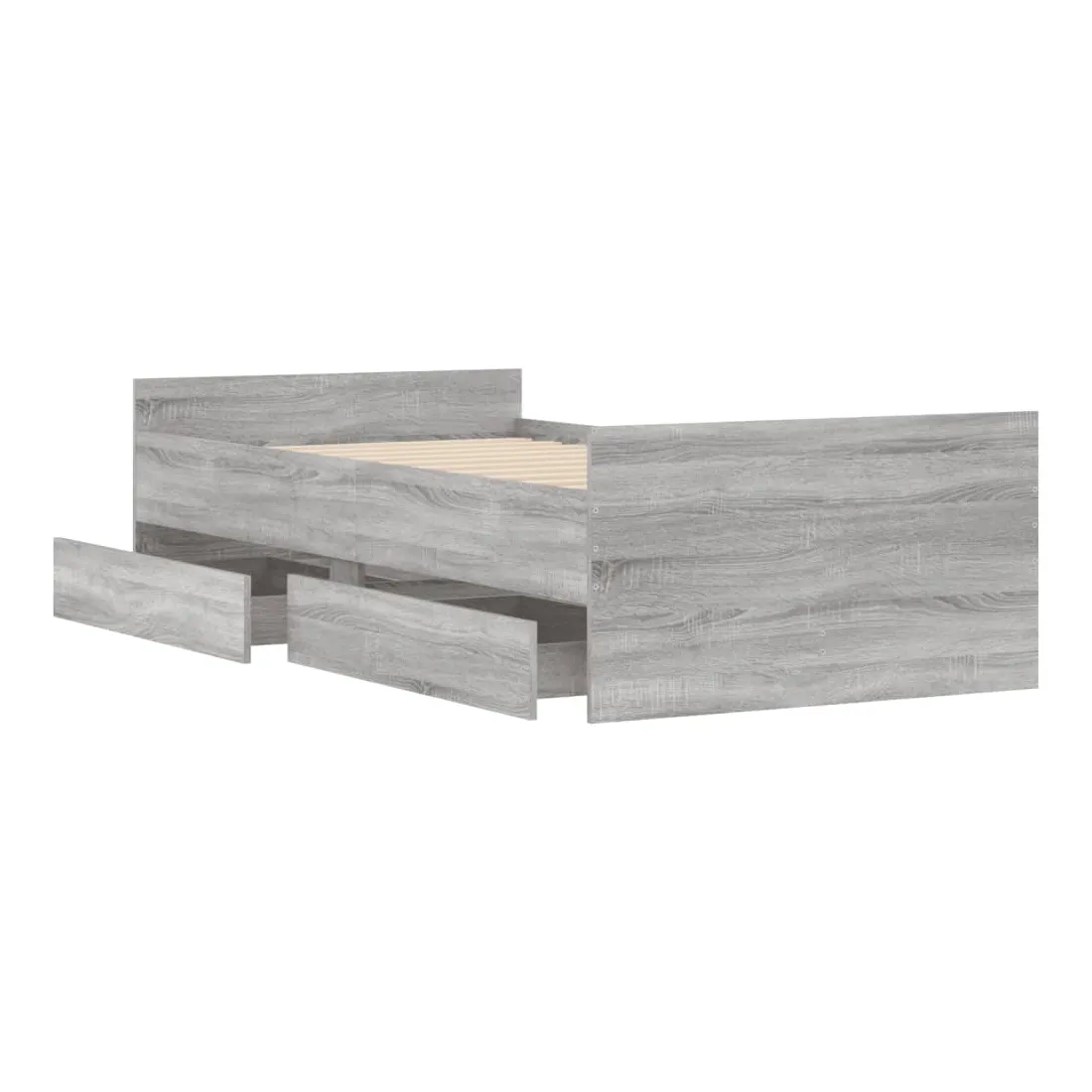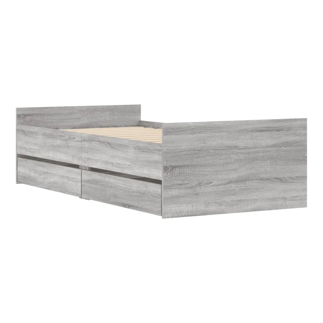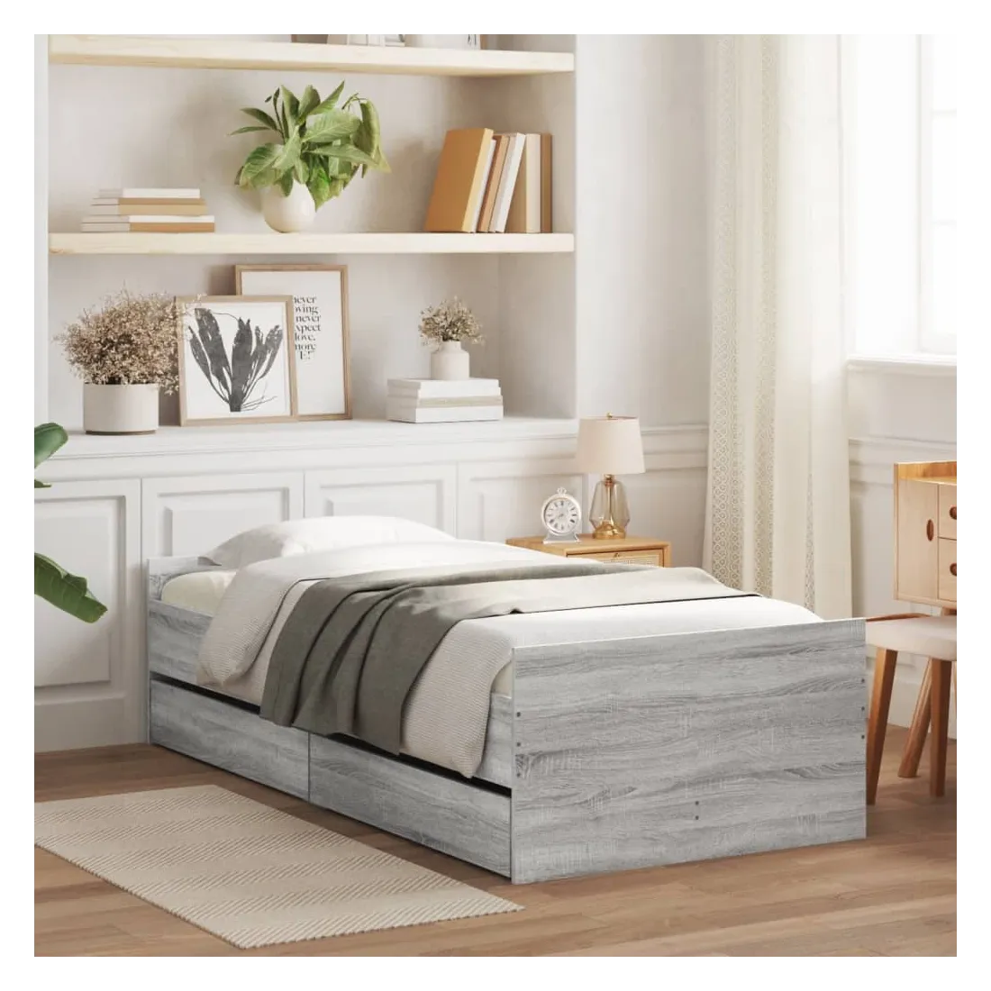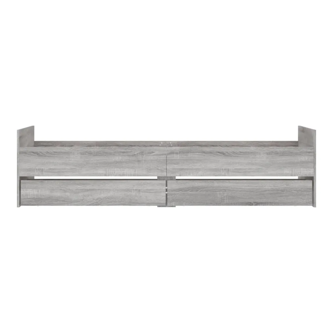 Ajoutez une touche moderne à votre chambre à coucher avec ce cadre de lit avec tiroirs ! Il apportera une touche pratique et décorative à votre espace de vie. Matériau durable : le cadre de lit est fabriquée en bois d'ingénierie. Le bois d'ingénierie est d'une qualité exceptionnelle avec une surface lisse et présente également de la résistance, de la stabilité et de la résistance à l'humidité.Lattes robustes : les lattes de contreplaqué assurent une bonne répartition du poids, garantissant que le matelas reste en place à chaque torsion de votre corps pendant le sommeil.Fonction de rangement : les tiroirs de lit inclus offrent suffisamment d'espace de rangement pour ranger vos articles essentiels, gardant votre pièce propre et bien rangée. Bon à savoir :Un matelas n'est pas inclus avec ce lit. Nous offrons une sélection variée de matelas. Vous pouvez consulter notre boutique pour trouver un matelas assorti.