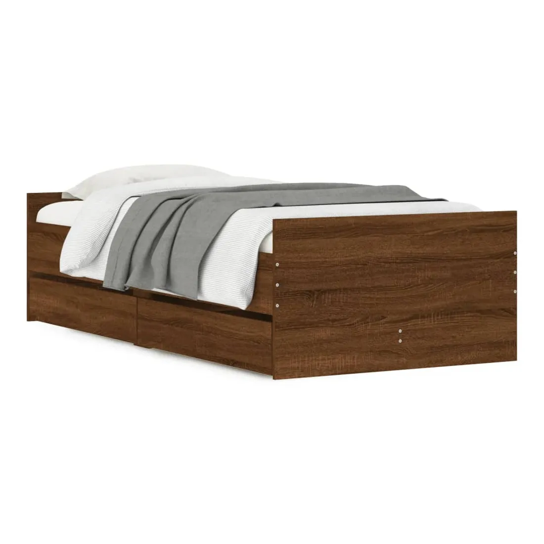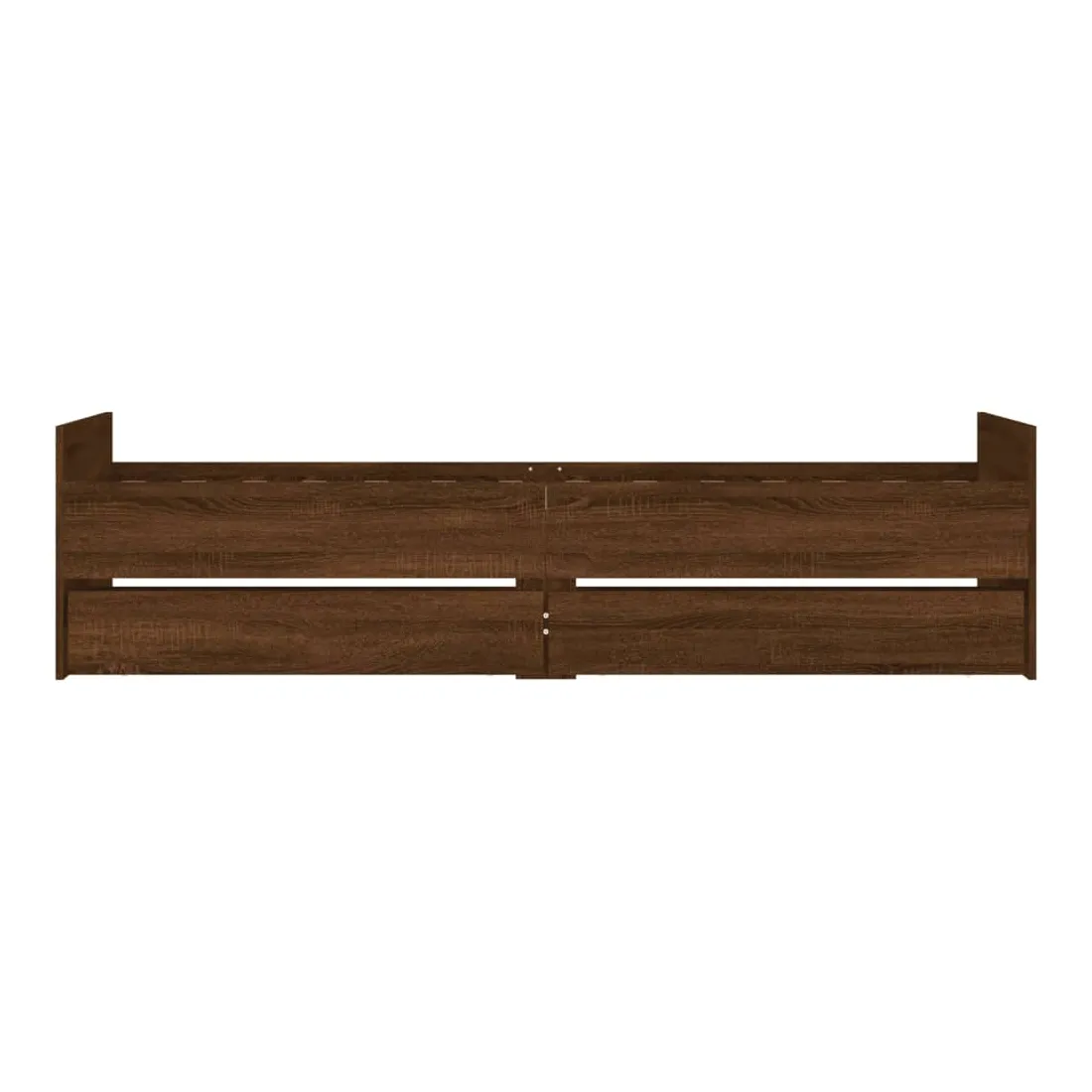 Ajoutez une touche moderne à votre chambre à coucher avec ce cadre de lit avec tiroirs ! Il apportera une touche pratique et décorative à votre espace de vie. Matériau durable : le cadre de lit est fabriquée en bois d'ingénierie. Le bois d'ingénierie est d'une qualité exceptionnelle avec une surface lisse et présente également de la résistance, de la stabilité et de la résistance à l'humidité.Lattes robustes : les lattes de contreplaqué assurent une bonne répartition du poids, garantissant que le matelas reste en place à chaque torsion de votre corps pendant le sommeil.Fonction de rangement : les tiroirs de lit inclus offrent suffisamment d'espace de rangement pour ranger vos articles essentiels, gardant votre pièce propre et bien rangée. Bon à savoir :Un matelas n'est pas inclus avec ce lit. Nous offrons une sélection variée de matelas. Vous pouvez consulter notre boutique pour trouver un matelas assorti.