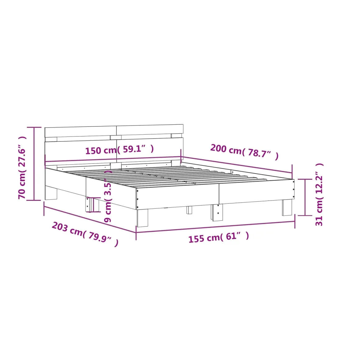 - Dimensions du matelas correspondant : 150 x 200 cm (l x L) (matelas non inclus)