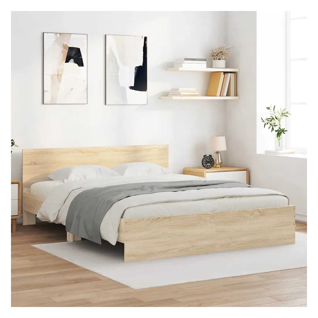 Obtenez une meilleure nuit de sommeil reposante grâce à ce cadre de lit ! Il est un supplément accueillant à toute chambre à coucher. Matériau durable : le bois d'ingénierie est d'une qualité exceptionnelle avec une surface lisse et présente également résistance, stabilité et résistance à l'humidité.Excellent soutien : la tête de lit vous offre un excellent soutien du dos lorsque vous êtes assis dans votre lit pour lire ou regarder la télévision.Lattes robustes : les lattes de contreplaqué assurent une bonne répartition du poids, garantissant que le matelas reste en place à chaque torsion de votre corps pendant le sommeil. Bon à savoir :Un matelas n'est pas inclus avec ce lit. Nous offrons une sélection variée de matelas. Vous pouvez consulter notre boutique pour trouver un matelas assorti.
