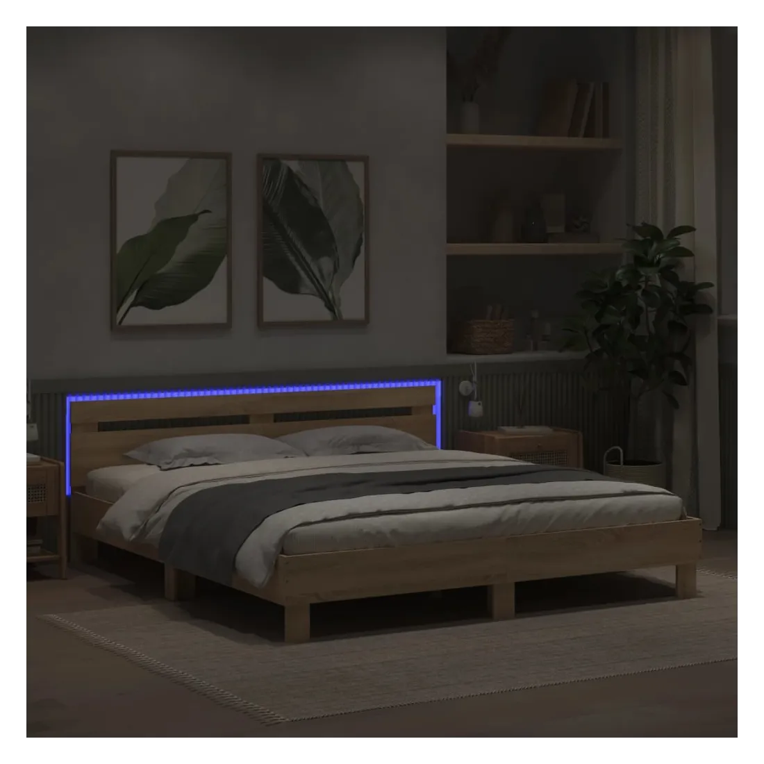 Obtenez une meilleure nuit de sommeil reposante grâce à ce cadre de lit avec LED ! Il est un supplément accueillant à toute chambre à coucher. Matériau durable : le bois d'ingénierie est d'une qualité exceptionnelle avec une surface lisse et présente également résistance, stabilité et résistance à l'humidité.Lumières LED RVB : le lit est équipé de lumières LED RVB vibrantes. Avec divers menus personnalisables, vous pouvez changer sans effort la couleur des lumières et même les régler automatiquement. Ces lumières LED renforcent non seulement l'aspect contemporain du sommier, mais ajoutent également à son attrait tendance.Excellent soutien : la tête de lit vous offre un excellent soutien du dos lorsque vous êtes assis dans votre lit pour lire ou regarder la télévision.Lattes robustes : les lattes de contreplaqué assurent une bonne répartition du poids, garantissant que le matelas reste en place à chaque torsion de votre corps pendant le sommeil. Bon à savoir :Un matelas n'est pas inclus avec ce lit. Nous offrons une sélection variée de matelas. Vous pouvez consulter notre boutique pour trouver un matelas assorti.Ce produit est doté d'un connecteur USB qui nécessite une source d'alimentation USB de 5V certifiée (non incluse).