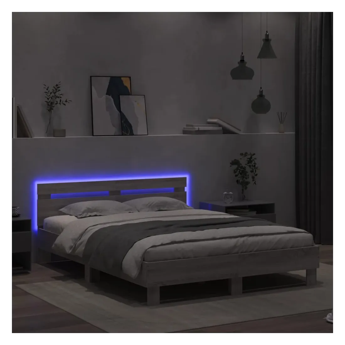 Obtenez une meilleure nuit de sommeil reposante grâce à ce cadre de lit avec LED ! Il est un supplément accueillant à toute chambre à coucher. Matériau durable : le bois d'ingénierie est d'une qualité exceptionnelle avec une surface lisse et présente également résistance, stabilité et résistance à l'humidité.Lumières LED RVB : le lit est équipé de lumières LED RVB vibrantes. Avec divers menus personnalisables, vous pouvez changer sans effort la couleur des lumières et même les régler automatiquement. Ces lumières LED renforcent non seulement l'aspect contemporain du sommier, mais ajoutent également à son attrait tendance.Excellent soutien : la tête de lit vous offre un excellent soutien du dos lorsque vous êtes assis dans votre lit pour lire ou regarder la télévision.Lattes robustes : les lattes de contreplaqué assurent une bonne répartition du poids, garantissant que le matelas reste en place à chaque torsion de votre corps pendant le sommeil. Bon à savoir :Un matelas n'est pas inclus avec ce lit. Nous offrons une sélection variée de matelas. Vous pouvez consulter notre boutique pour trouver un matelas assorti.Ce produit est doté d'un connecteur USB qui nécessite une source d'alimentation USB de 5V certifiée (non incluse).