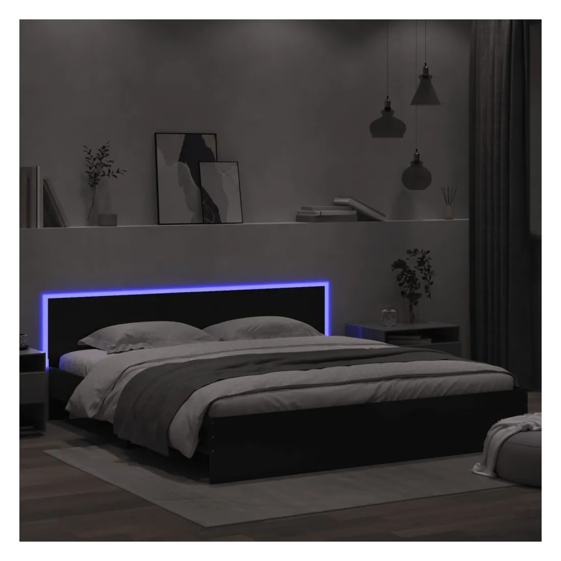 Obtenez une meilleure nuit de sommeil reposante grâce à ce cadre de lit avec LED ! Il est un supplément accueillant à toute chambre à coucher. Matériau durable : le bois d'ingénierie est d'une qualité exceptionnelle avec une surface lisse et présente également résistance, stabilité et résistance à l'humidité.Lumières LED RVB : le lit est équipé de lumières LED RVB vibrantes. Avec divers menus personnalisables, vous pouvez changer sans effort la couleur des lumières et même les régler automatiquement. Ces lumières LED renforcent non seulement l'aspect contemporain du lit, mais ajoutent également à son attrait tendance.Excellent soutien : la tête de lit vous offre un excellent soutien du dos lorsque vous êtes assis dans votre lit pour lire ou regarder la télévision.Lattes robustes : les lattes de contreplaqué assurent une bonne répartition du poids, garantissant que le matelas reste en place à chaque torsion de votre corps pendant le sommeil. Bon à savoir :Un matelas n'est pas inclus avec ce lit. Nous offrons une sélection variée de matelas. Vous pouvez consulter notre boutique pour trouver un matelas assorti.Ce produit est doté d'un connecteur USB qui nécessite une source d'alimentation certifiée de USB 5V (non incluse).