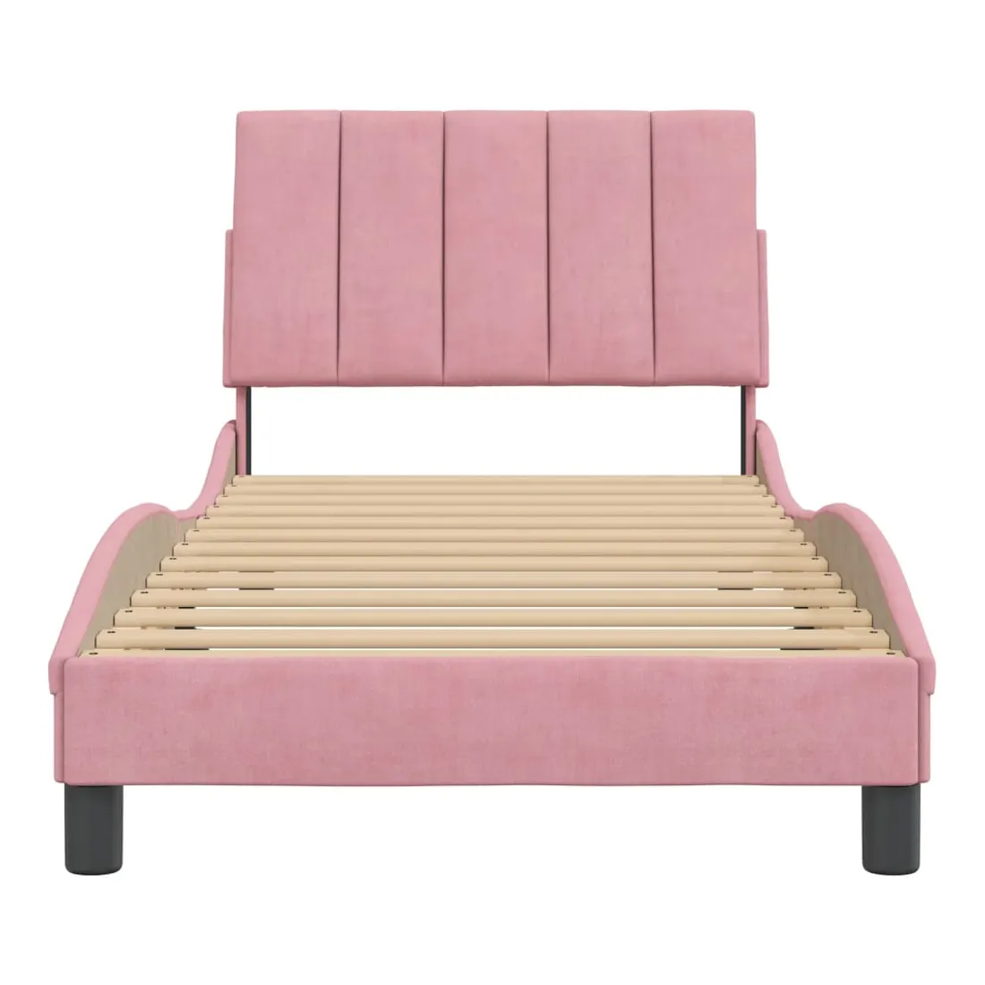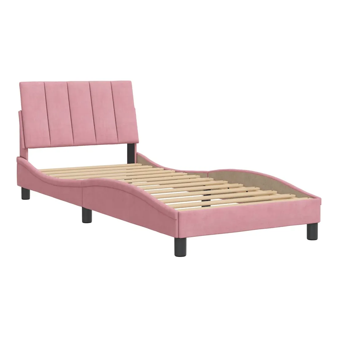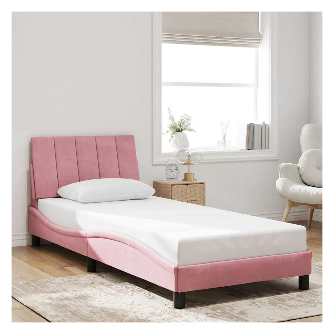 Obtenez une meilleure nuit de sommeil reposante grâce à ce cadre de lit avec tête de lit ! Il est un supplément accueillant à toute chambre à coucher. Velours doux : le velours est un tissu doux et confortable, agréable au toucher.Lattes de contreplaqué : les lattes de contreplaqué assurent une bonne répartition du poids, garantissant que le matelas reste en place à chaque torsion de votre corps pendant le sommeil.Excellent soutien : l'oreiller de tête de lit est rembourré avec de la mousse pour un confort ultra doux et optimal vous offre un excellent soutien du dos lorsque vous êtes assis dans votre lit pour lire ou regarder la télévision.Design pratique : le coussin de la tête de lit est doté d'une fermeture à glissière pour faciliter l'installation, et les bandes auto-agrippantes au dos peuvent être utilisées pour fixer les lampes LED.Design latéral ondulé : l’aspect ondulé du cadre de lit est élégant et sophistiqué, ajoutant une touche moderne et élégante à votre décor, ce qui en fait le point central de votre chambre à coucher. Bon à savoir :Un matelas n'est pas inclus avec ce lit. Nous offrons une sélection variée de matelas. Vous pouvez consulter notre boutique pour trouver un matelas assorti.