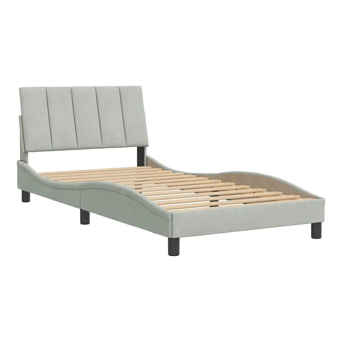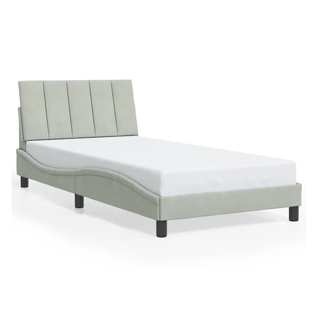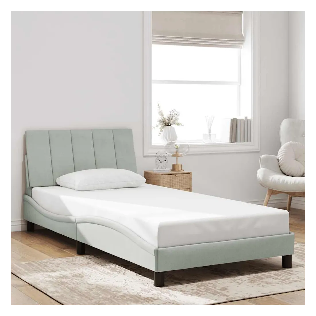 Obtenez une meilleure nuit de sommeil reposante grâce à ce cadre de lit avec tête de lit ! Il est un supplément accueillant à toute chambre à coucher. Velours doux : le velours est un tissu doux et confortable, agréable au toucher.Lattes de contreplaqué : les lattes de contreplaqué assurent une bonne répartition du poids, garantissant que le matelas reste en place à chaque torsion de votre corps pendant le sommeil.Excellent soutien : l'oreiller de tête de lit est rembourré avec de la mousse pour un confort ultra doux et optimal vous offre un excellent soutien du dos lorsque vous êtes assis dans votre lit pour lire ou regarder la télévision.Design pratique : le coussin de la tête de lit est doté d'une fermeture à glissière pour faciliter l'installation, et les bandes auto-agrippantes au dos peuvent être utilisées pour fixer les lampes LED.Design latéral ondulé : l’aspect ondulé du cadre de lit est élégant et sophistiqué, ajoutant une touche moderne et élégante à votre décor, ce qui en fait le point central de votre chambre à coucher. Bon à savoir :Un matelas n'est pas inclus avec ce lit. Nous offrons une sélection variée de matelas. Vous pouvez consulter notre boutique pour trouver un matelas assorti.