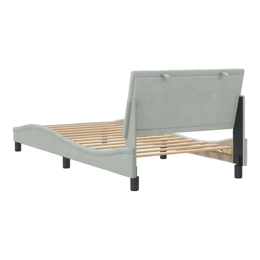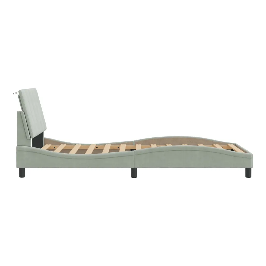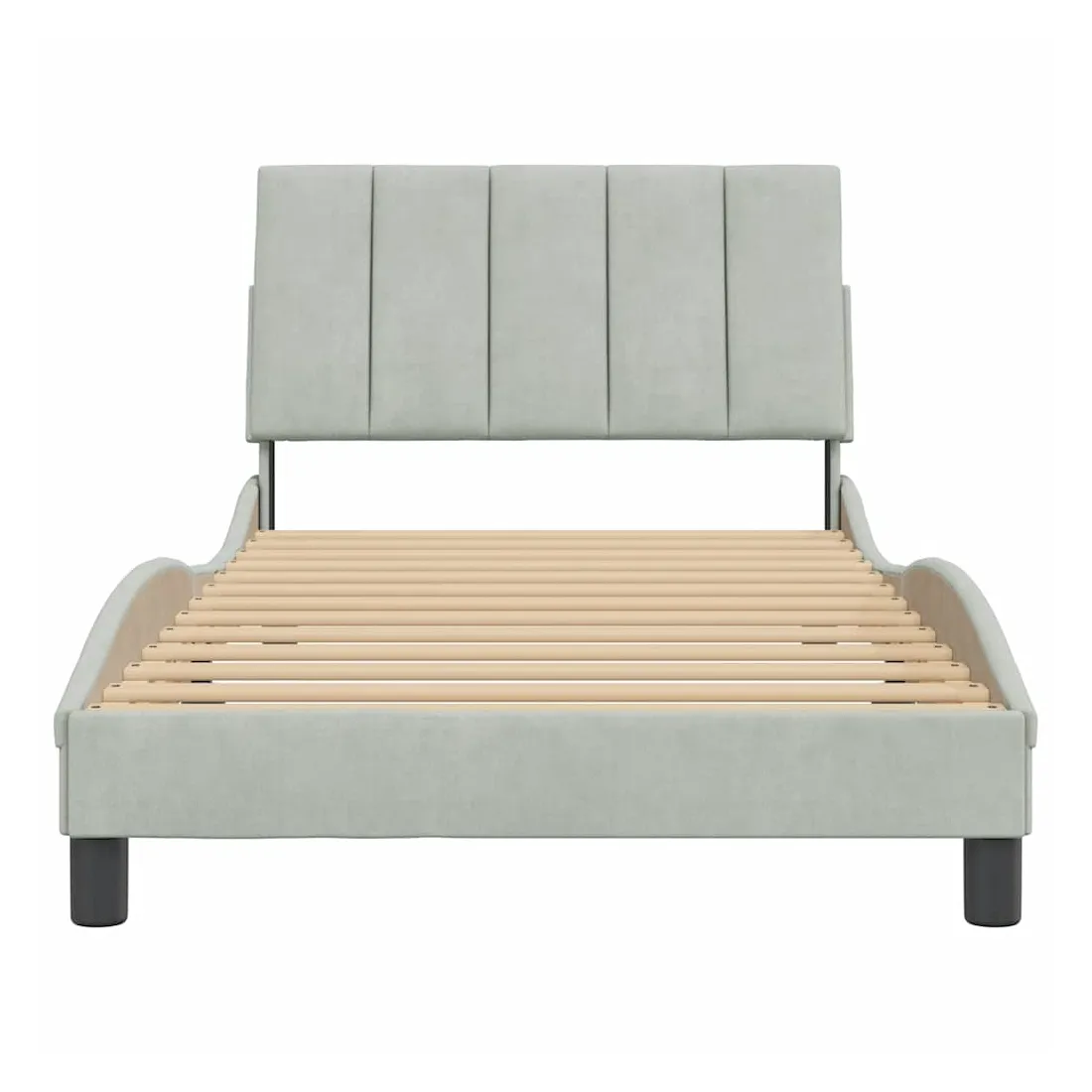 Obtenez une meilleure nuit de sommeil reposante grâce à ce cadre de lit avec tête de lit ! Il est un supplément accueillant à toute chambre à coucher. Velours doux : le velours est un tissu doux et confortable, agréable au toucher.Lattes de contreplaqué : les lattes de contreplaqué assurent une bonne répartition du poids, garantissant que le matelas reste en place à chaque torsion de votre corps pendant le sommeil.Excellent soutien : l'oreiller de tête de lit est rembourré avec de la mousse pour un confort ultra doux et optimal vous offre un excellent soutien du dos lorsque vous êtes assis dans votre lit pour lire ou regarder la télévision.Design pratique : le coussin de la tête de lit est doté d'une fermeture à glissière pour faciliter l'installation, et les bandes auto-agrippantes au dos peuvent être utilisées pour fixer les lampes LED.Design latéral ondulé : l’aspect ondulé du cadre de lit est élégant et sophistiqué, ajoutant une touche moderne et élégante à votre décor, ce qui en fait le point central de votre chambre à coucher. Bon à savoir :Un matelas n'est pas inclus avec ce lit. Nous offrons une sélection variée de matelas. Vous pouvez consulter notre boutique pour trouver un matelas assorti.