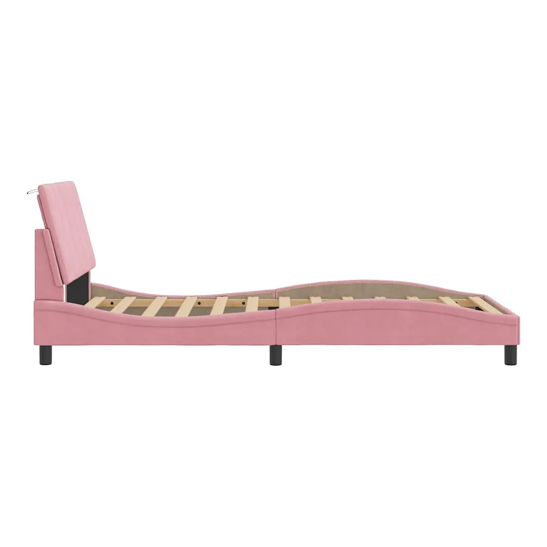 Obtenez une meilleure nuit de sommeil reposante grâce à ce cadre de lit avec tête de lit ! Il est un supplément accueillant à toute chambre à coucher. Velours doux : le velours est un tissu doux et confortable, agréable au toucher.Lattes de contreplaqué : les lattes de contreplaqué assurent une bonne répartition du poids, garantissant que le matelas reste en place à chaque torsion de votre corps pendant le sommeil.Excellent soutien : l'oreiller de tête de lit est rembourré avec de la mousse pour un confort ultra doux et optimal vous offre un excellent soutien du dos lorsque vous êtes assis dans votre lit pour lire ou regarder la télévision.Design pratique : le coussin de la tête de lit est doté d'une fermeture à glissière pour faciliter l'installation, et les bandes auto-agrippantes au dos peuvent être utilisées pour fixer les lampes LED.Design latéral ondulé : l’aspect ondulé du cadre de lit est élégant et sophistiqué, ajoutant une touche moderne et élégante à votre décor, ce qui en fait le point central de votre chambre à coucher. Bon à savoir :Un matelas n'est pas inclus avec ce lit. Nous offrons une sélection variée de matelas. Vous pouvez consulter notre boutique pour trouver un matelas assorti.