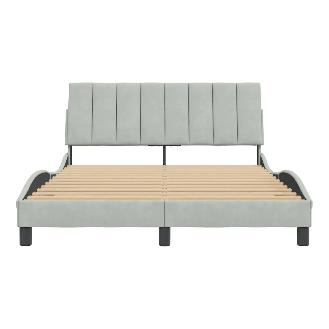Obtenez une meilleure nuit de sommeil reposante grâce à ce cadre de lit avec tête de lit ! Il est un supplément accueillant à toute chambre à coucher. Velours doux : le velours est un tissu doux et confortable, agréable au toucher.Lattes de contreplaqué : les lattes de contreplaqué assurent une bonne répartition du poids, garantissant que le matelas reste en place à chaque torsion de votre corps pendant le sommeil.Excellent soutien : l'oreiller de tête de lit est rembourré avec de la mousse pour un confort ultra doux et optimal vous offre un excellent soutien du dos lorsque vous êtes assis dans votre lit pour lire ou regarder la télévision.Design pratique : le coussin de la tête de lit est doté d'une fermeture à glissière pour faciliter l'installation, et les bandes auto-agrippantes au dos peuvent être utilisées pour fixer les lampes LED.Design latéral ondulé : l’aspect ondulé du cadre de lit est élégant et sophistiqué, ajoutant une touche moderne et élégante à votre décor, ce qui en fait le point central de votre chambre à coucher. Bon à savoir :Un matelas n'est pas inclus avec ce lit. Nous offrons une sélection variée de matelas. Vous pouvez consulter notre boutique pour trouver un matelas assorti.