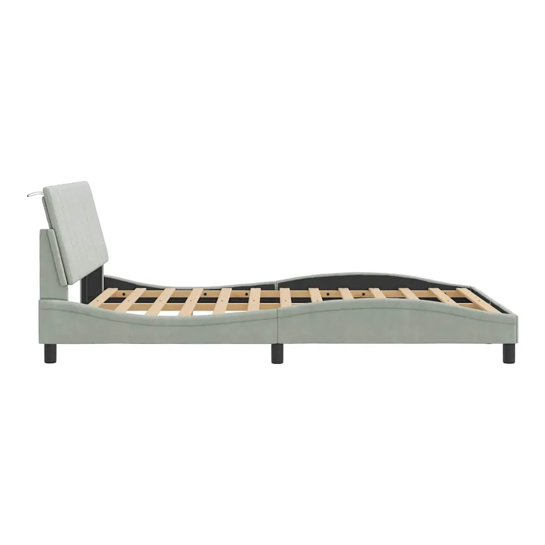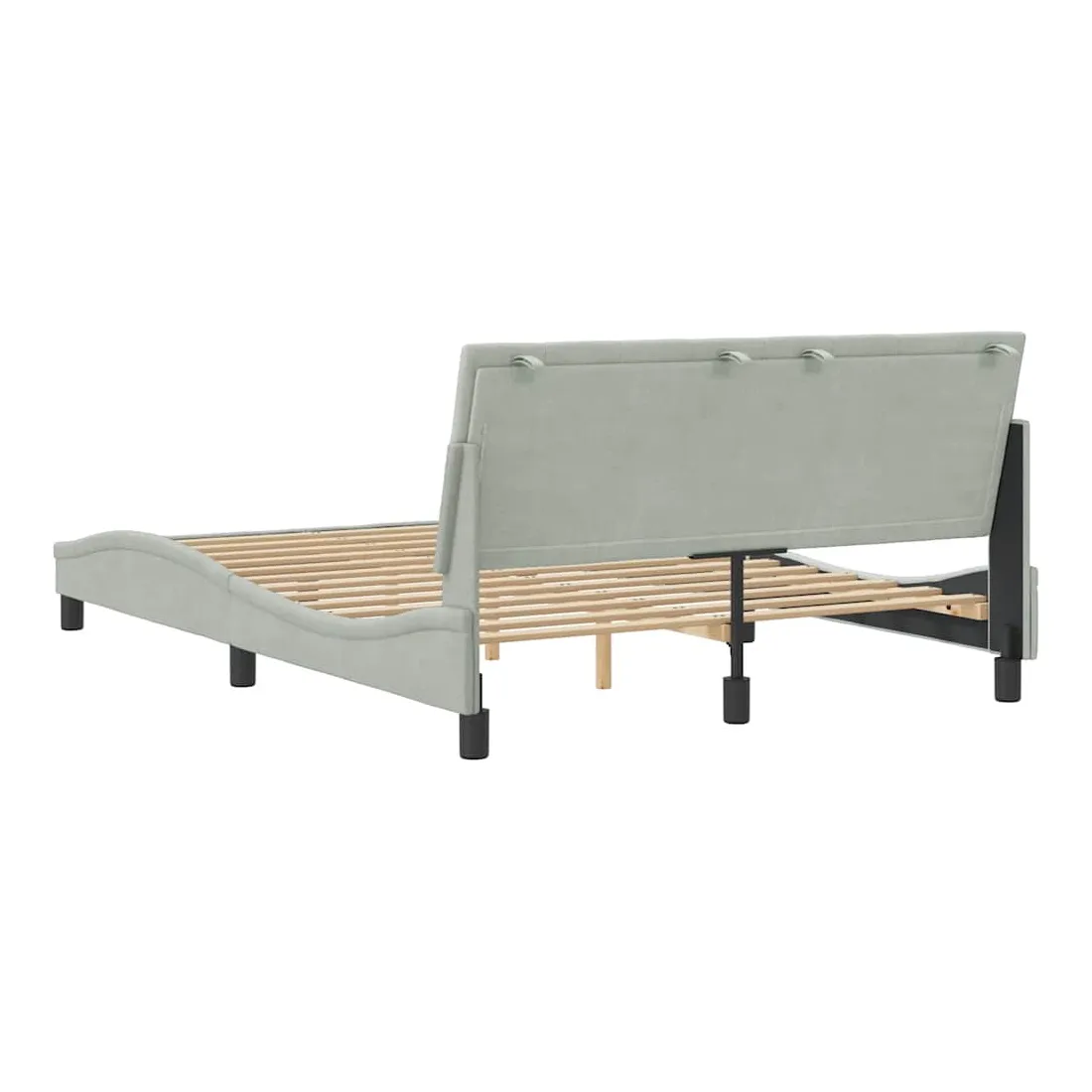 Obtenez une meilleure nuit de sommeil reposante grâce à ce cadre de lit avec tête de lit ! Il est un supplément accueillant à toute chambre à coucher. Velours doux : le velours est un tissu doux et confortable, agréable au toucher.Lattes de contreplaqué : les lattes de contreplaqué assurent une bonne répartition du poids, garantissant que le matelas reste en place à chaque torsion de votre corps pendant le sommeil.Excellent soutien : l'oreiller de tête de lit est rembourré avec de la mousse pour un confort ultra doux et optimal vous offre un excellent soutien du dos lorsque vous êtes assis dans votre lit pour lire ou regarder la télévision.Design pratique : le coussin de la tête de lit est doté d'une fermeture à glissière pour faciliter l'installation, et les bandes auto-agrippantes au dos peuvent être utilisées pour fixer les lampes LED.Design latéral ondulé : l’aspect ondulé du cadre de lit est élégant et sophistiqué, ajoutant une touche moderne et élégante à votre décor, ce qui en fait le point central de votre chambre à coucher. Bon à savoir :Un matelas n'est pas inclus avec ce lit. Nous offrons une sélection variée de matelas. Vous pouvez consulter notre boutique pour trouver un matelas assorti.