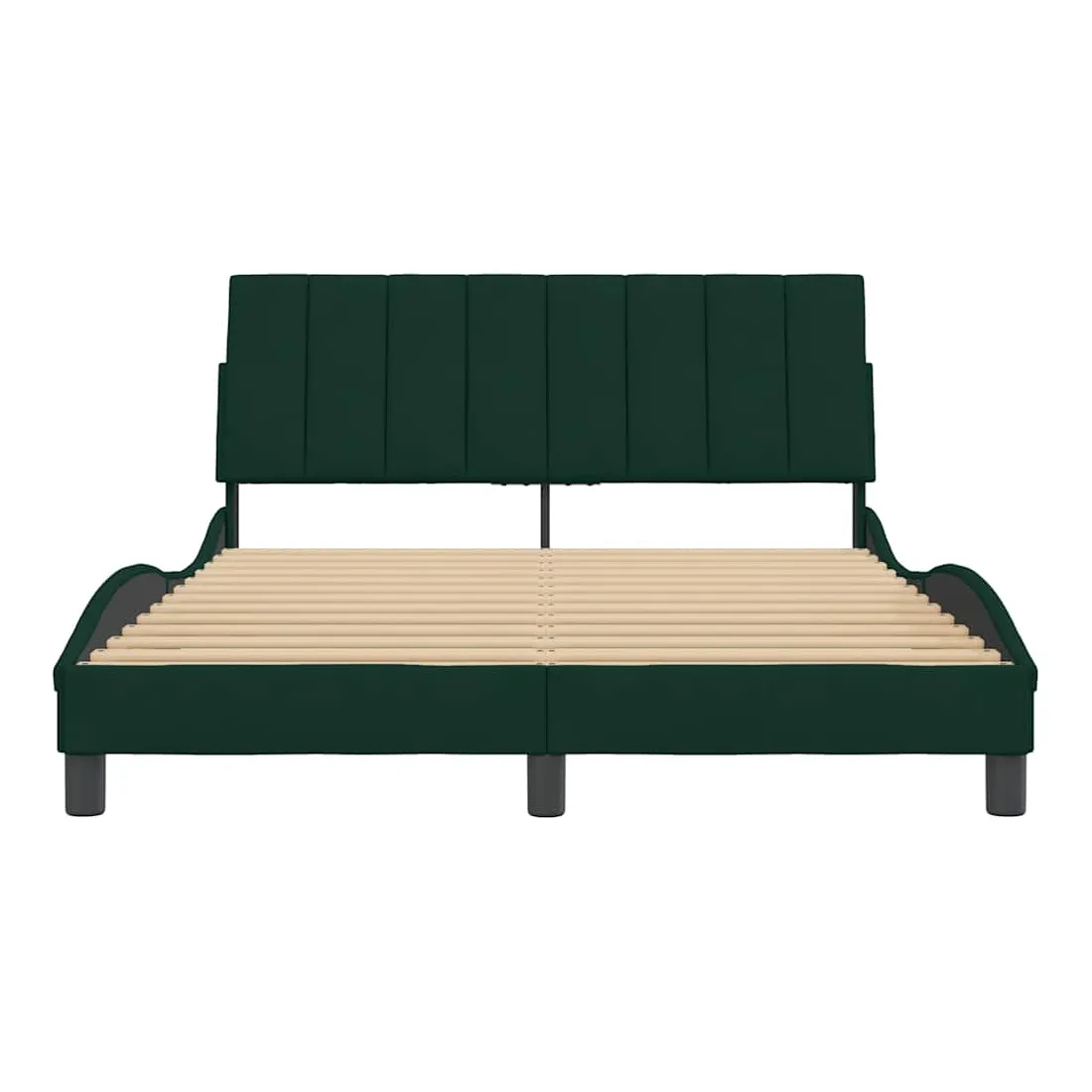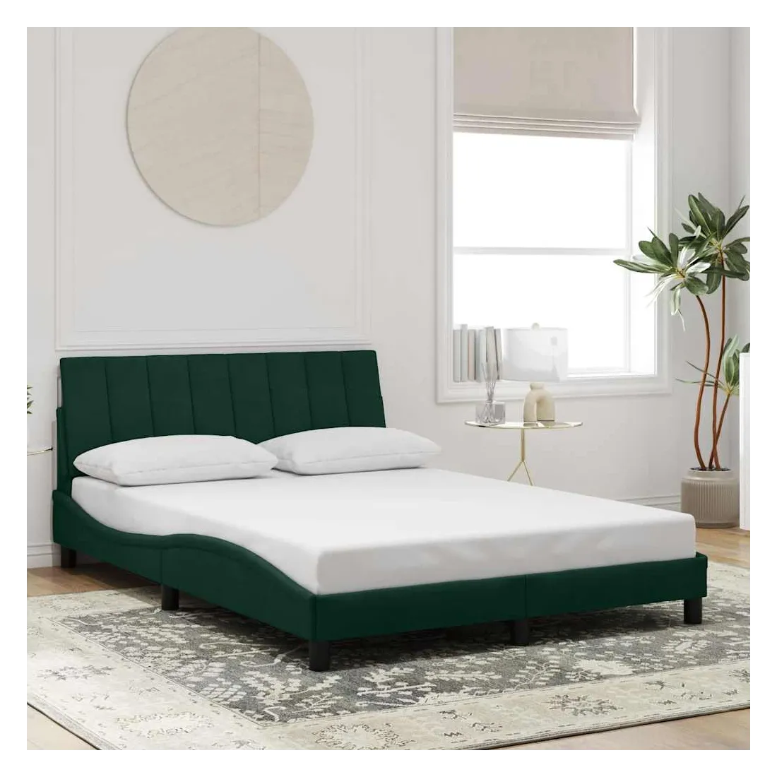 Obtenez une meilleure nuit de sommeil reposante grâce à ce cadre de lit avec tête de lit ! Il est un supplément accueillant à toute chambre à coucher. Velours doux : le velours est un tissu doux et confortable, agréable au toucher.Lattes de contreplaqué : les lattes de contreplaqué assurent une bonne répartition du poids, garantissant que le matelas reste en place à chaque torsion de votre corps pendant le sommeil.Excellent soutien : l'oreiller de tête de lit est rembourré avec de la mousse pour un confort ultra doux et optimal vous offre un excellent soutien du dos lorsque vous êtes assis dans votre lit pour lire ou regarder la télévision.Design pratique : le coussin de la tête de lit est doté d'une fermeture à glissière pour faciliter l'installation, et les bandes auto-agrippantes au dos peuvent être utilisées pour fixer les lampes LED.Design latéral ondulé : l’aspect ondulé du cadre de lit est élégant et sophistiqué, ajoutant une touche moderne et élégante à votre décor, ce qui en fait le point central de votre chambre à coucher. Bon à savoir :Un matelas n'est pas inclus avec ce lit. Nous offrons une sélection variée de matelas. Vous pouvez consulter notre boutique pour trouver un matelas assorti.