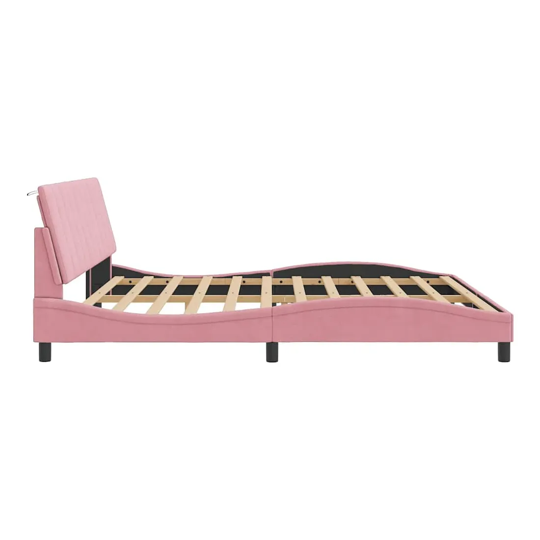 Obtenez une meilleure nuit de sommeil reposante grâce à ce cadre de lit avec tête de lit ! Il est un supplément accueillant à toute chambre à coucher. Velours doux : le velours est un tissu doux et confortable, agréable au toucher.Lattes de contreplaqué : les lattes de contreplaqué assurent une bonne répartition du poids, garantissant que le matelas reste en place à chaque torsion de votre corps pendant le sommeil.Excellent soutien : l'oreiller de tête de lit est rembourré avec de la mousse pour un confort ultra doux et optimal vous offre un excellent soutien du dos lorsque vous êtes assis dans votre lit pour lire ou regarder la télévision.Design pratique : le coussin de la tête de lit est doté d'une fermeture à glissière pour faciliter l'installation, et les bandes auto-agrippantes au dos peuvent être utilisées pour fixer les lampes LED.Design latéral ondulé : l’aspect ondulé du cadre de lit est élégant et sophistiqué, ajoutant une touche moderne et élégante à votre décor, ce qui en fait le point central de votre chambre à coucher. Bon à savoir :Un matelas n'est pas inclus avec ce lit. Nous offrons une sélection variée de matelas. Vous pouvez consulter notre boutique pour trouver un matelas assorti.