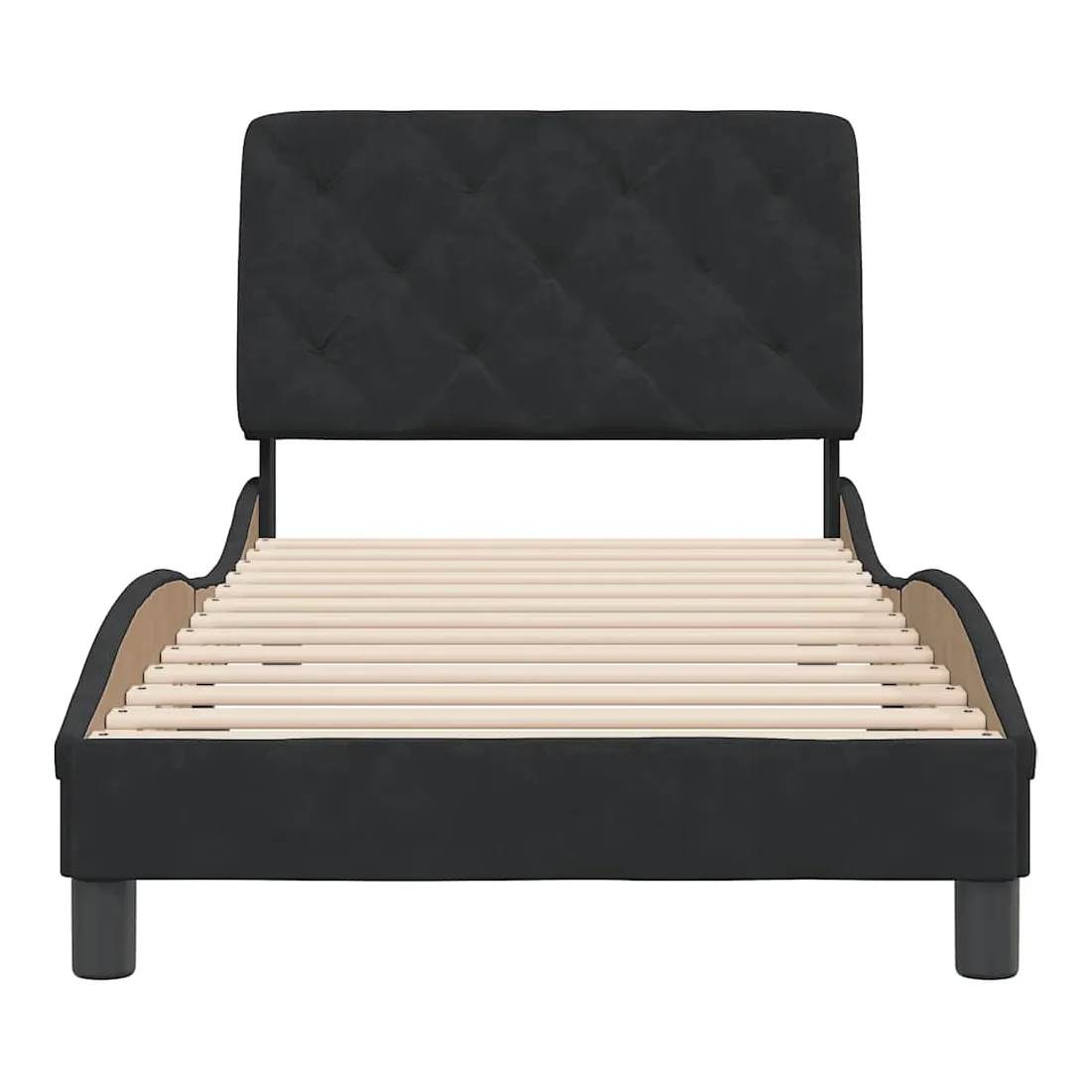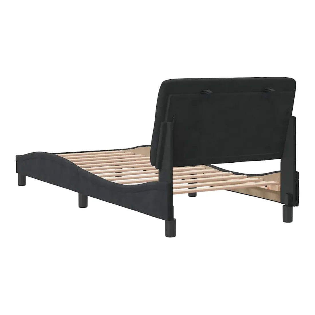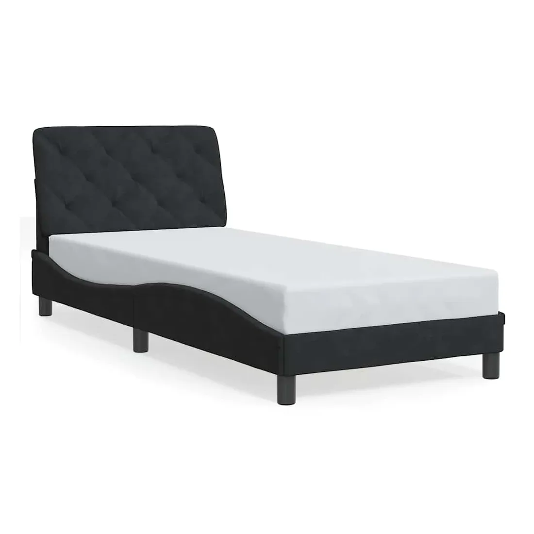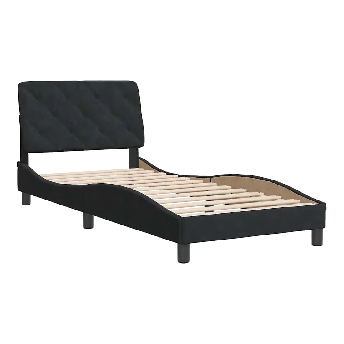 Obtenez une meilleure nuit de sommeil reposante grâce à ce cadre de lit avec tête de lit ! Il est un supplément accueillant à toute chambre à coucher. Velours doux : le velours est un tissu doux et confortable, agréable au toucher.Lattes de contreplaqué : les lattes de contreplaqué assurent une bonne répartition du poids, garantissant que le matelas reste en place à chaque torsion de votre corps pendant le sommeil.Excellent soutien : l'oreiller de tête de lit est rembourré avec de la mousse pour un confort ultra doux et optimal vous offre un excellent soutien du dos lorsque vous êtes assis dans votre lit pour lire ou regarder la télévision.Design pratique : le coussin de la tête de lit est doté d'une fermeture à glissière pour faciliter l'installation, et les bandes auto-agrippantes au dos peuvent être utilisées pour fixer les lampes LED.Design latéral ondulé : l’aspect ondulé du cadre de lit est élégant et sophistiqué, ajoutant une touche moderne et élégante à votre décor, ce qui en fait le point central de votre chambre à coucher. Bon à savoir :Un matelas n'est pas inclus avec ce lit. Nous offrons une sélection variée de matelas. Vous pouvez consulter notre boutique pour trouver un matelas assorti.