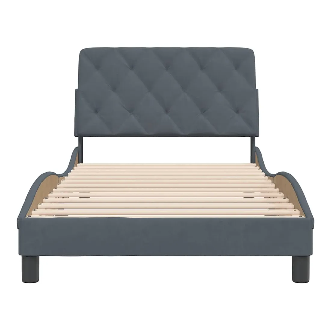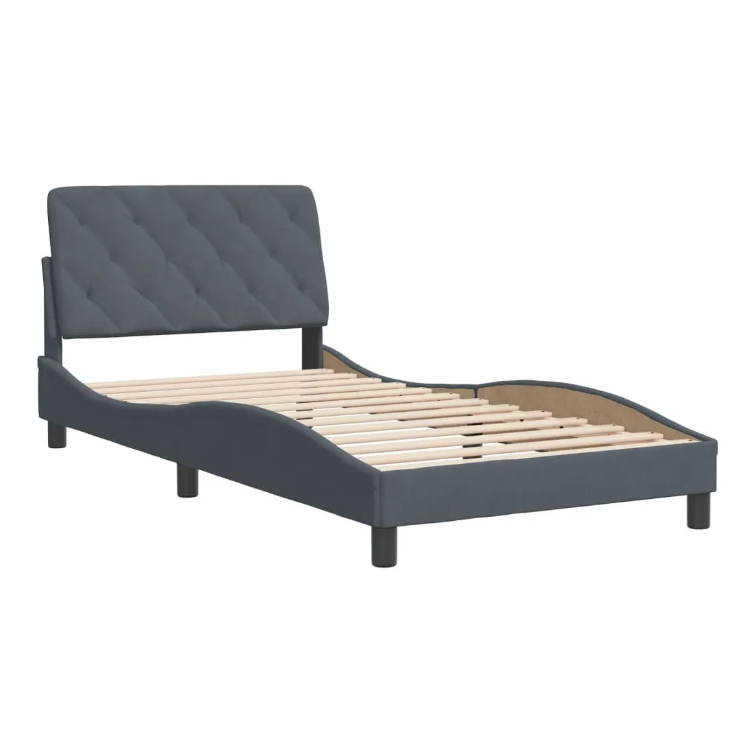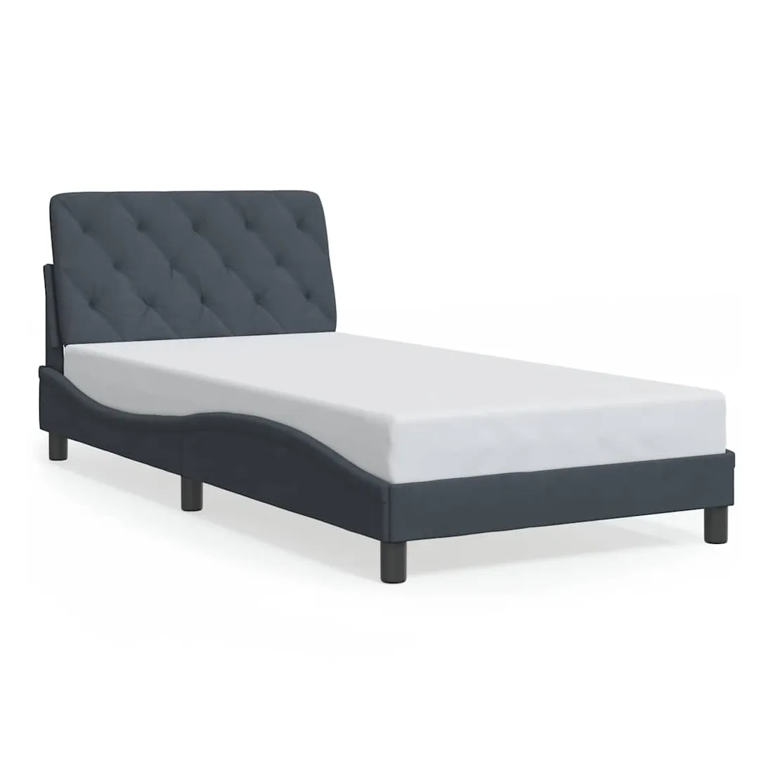 Obtenez une meilleure nuit de sommeil reposante grâce à ce cadre de lit avec tête de lit ! Il est un supplément accueillant à toute chambre à coucher. Velours doux : le velours est un tissu doux et confortable, agréable au toucher.Lattes de contreplaqué : les lattes de contreplaqué assurent une bonne répartition du poids, garantissant que le matelas reste en place à chaque torsion de votre corps pendant le sommeil.Excellent soutien : l'oreiller de tête de lit est rembourré avec de la mousse pour un confort ultra doux et optimal vous offre un excellent soutien du dos lorsque vous êtes assis dans votre lit pour lire ou regarder la télévision.Design pratique : le coussin de la tête de lit est doté d'une fermeture à glissière pour faciliter l'installation, et les bandes auto-agrippantes au dos peuvent être utilisées pour fixer les lampes LED.Design latéral ondulé : l’aspect ondulé du cadre de lit est élégant et sophistiqué, ajoutant une touche moderne et élégante à votre décor, ce qui en fait le point central de votre chambre à coucher. Bon à savoir :Un matelas n'est pas inclus avec ce lit. Nous offrons une sélection variée de matelas. Vous pouvez consulter notre boutique pour trouver un matelas assorti.