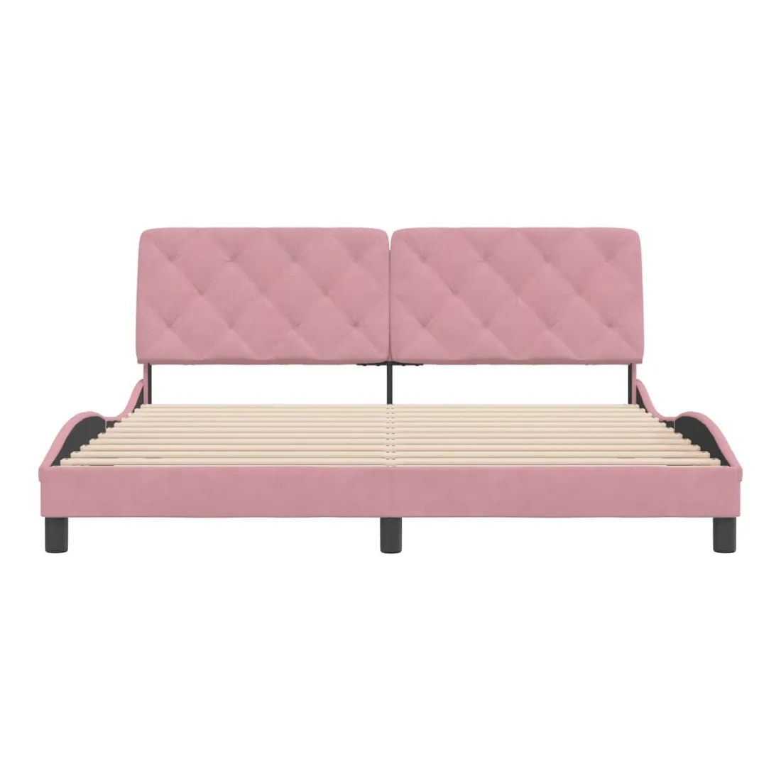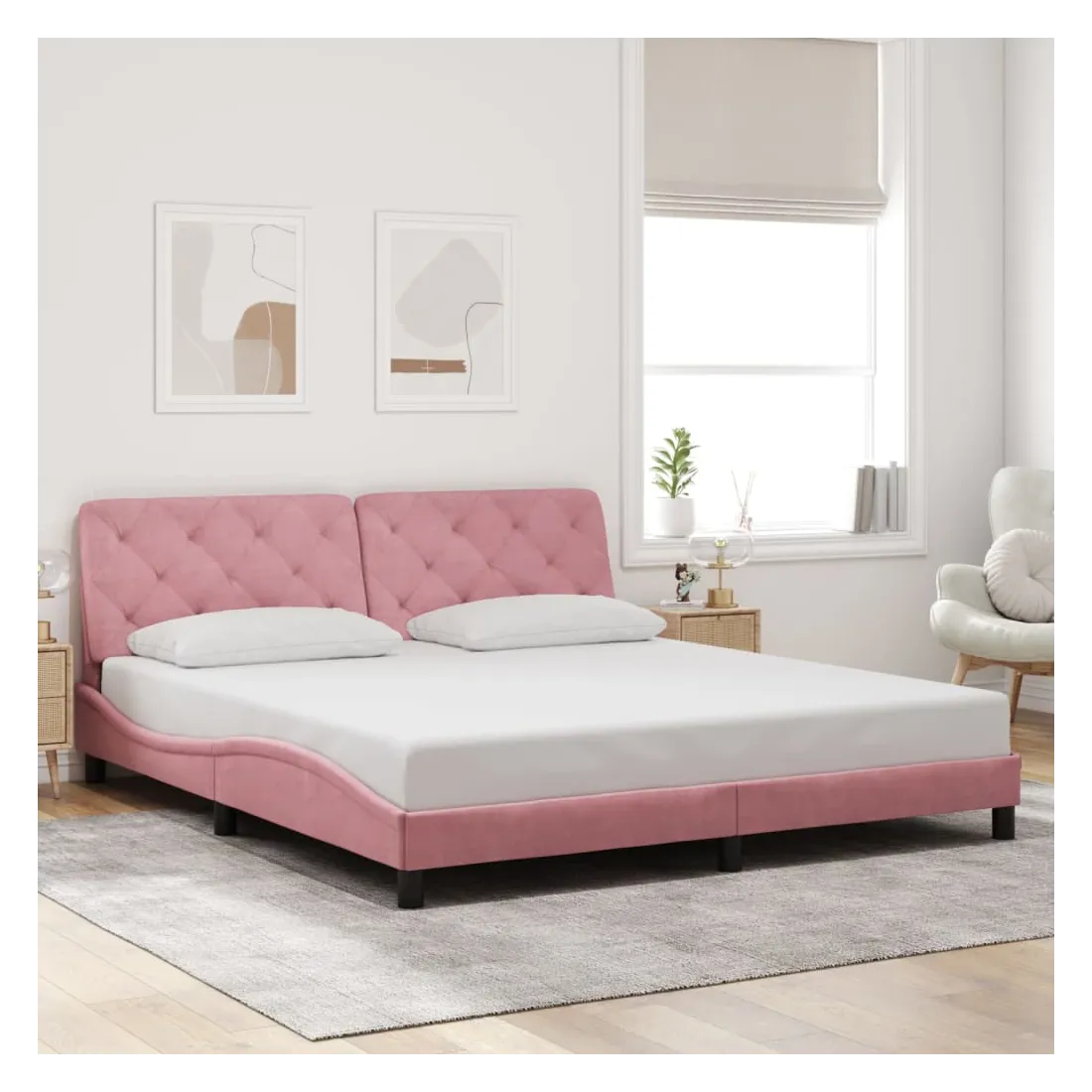 Obtenez une meilleure nuit de sommeil reposante grâce à ce cadre de lit avec tête de lit ! Il est un supplément accueillant à toute chambre à coucher. Velours doux : le velours est un tissu doux et confortable, agréable au toucher.Lattes de contreplaqué : les lattes de contreplaqué assurent une bonne répartition du poids, garantissant que le matelas reste en place à chaque torsion de votre corps pendant le sommeil.Excellent soutien : l'oreiller de tête de lit est rembourré avec de la mousse pour un confort ultra doux et optimal vous offre un excellent soutien du dos lorsque vous êtes assis dans votre lit pour lire ou regarder la télévision.Design pratique : le coussin de la tête de lit est doté d'une fermeture à glissière pour faciliter l'installation, et les bandes auto-agrippantes au dos peuvent être utilisées pour fixer les lampes LED.Design latéral ondulé : l’aspect ondulé du cadre de lit est élégant et sophistiqué, ajoutant une touche moderne et élégante à votre décor, ce qui en fait le point central de votre chambre à coucher. Bon à savoir :Un matelas n'est pas inclus avec ce lit. Nous offrons une sélection variée de matelas. Vous pouvez consulter notre boutique pour trouver un matelas assorti.