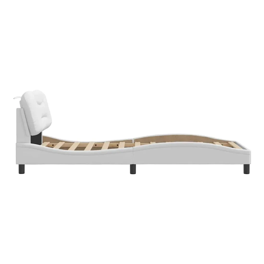 Obtenez une meilleure nuit de sommeil reposante grâce à ce cadre de lit avec tête de lit ! Il est un supplément accueillant à toute chambre à coucher. Similicuir durable : le similicuir de qualité supérieure est un matériau très durable. Il est résistant aux taches, ce qui le rend facile à nettoyer avec un chiffon humide. La surface lisse donne également un aspect luxueux et la beauté du cuir véritable.Lattes de contreplaqué : les lattes de contreplaqué assurent une bonne répartition du poids, garantissant que le matelas reste en place à chaque torsion de votre corps pendant le sommeil.Excellent soutien : l'oreiller de tête de lit est rembourré avec de la fibre de polypropylène pour un confort ultra doux et optimal vous offre un excellent soutien du dos lorsque vous êtes assis dans votre lit pour lire ou regarder la télévision.Design latéral ondulé : l’aspect ondulé du cadre de lit est élégant et sophistiqué, ajoutant une touche moderne et élégante à votre décor, ce qui en fait le point central de votre chambre à coucher. Bon à savoir :Un matelas n'est pas inclus avec ce lit. Nous offrons une sélection variée de matelas. Vous pouvez consulter notre boutique pour trouver un matelas assorti.