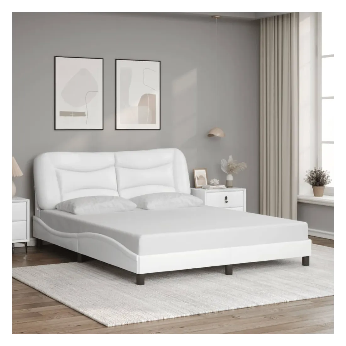 Obtenez une meilleure nuit de sommeil reposante grâce à ce cadre de lit avec tête de lit ! Il est un supplément accueillant à toute chambre à coucher. Similicuir durable : le similicuir de qualité supérieure est un matériau très durable. Il est résistant aux taches, ce qui le rend facile à nettoyer avec un chiffon humide. La surface lisse donne également un aspect luxueux et la beauté du cuir véritable.Lattes de contreplaqué : les lattes de contreplaqué assurent une bonne répartition du poids, garantissant que le matelas reste en place à chaque torsion de votre corps pendant le sommeil.Excellent soutien : l'oreiller de tête de lit est rembourré avec de la fibre de polypropylène pour un confort ultra doux et optimal vous offre un excellent soutien du dos lorsque vous êtes assis dans votre lit pour lire ou regarder la télévision.Design latéral ondulé : l’aspect ondulé du cadre de lit est élégant et sophistiqué, ajoutant une touche moderne et élégante à votre décor, ce qui en fait le point central de votre chambre à coucher. Bon à savoir :Un matelas n'est pas inclus avec ce lit. Nous offrons une sélection variée de matelas. Vous pouvez consulter notre boutique pour trouver un matelas assorti.