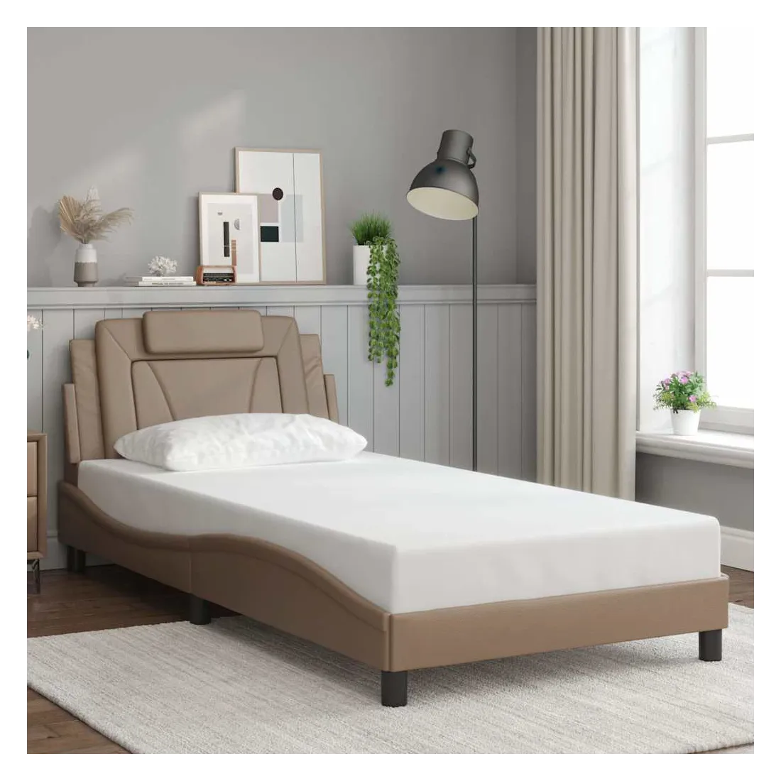 Obtenez une meilleure nuit de sommeil reposante grâce à ce cadre de lit avec tête de lit ! Il est un supplément accueillant à toute chambre à coucher. Similicuir durable : le similicuir de qualité supérieure est un matériau très durable. Il est résistant aux taches, ce qui le rend facile à nettoyer avec un chiffon humide. La surface lisse donne également un aspect luxueux et la beauté du cuir véritable.Lattes de contreplaqué : les lattes de contreplaqué assurent une bonne répartition du poids, garantissant que le matelas reste en place à chaque torsion de votre corps pendant le sommeil.Excellent soutien : l'oreiller de tête de lit est rembourré avec de la mousse pour un confort ultra doux et optimal vous offre un excellent soutien du dos lorsque vous êtes assis dans votre lit pour lire ou regarder la télévision.Design latéral ondulé : l’aspect ondulé du cadre de lit est élégant et sophistiqué, ajoutant une touche moderne et élégante à votre décor, ce qui en fait le point central de votre chambre à coucher. Bon à savoir :Un matelas n'est pas inclus avec ce lit. Nous offrons une sélection variée de matelas. Vous pouvez consulter notre boutique pour trouver un matelas assorti.