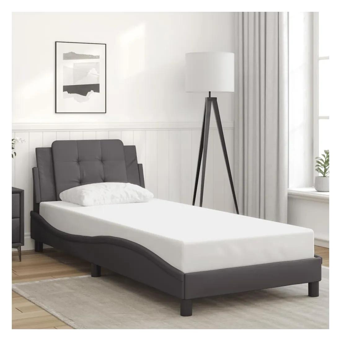 Obtenez une meilleure nuit de sommeil reposante grâce à ce cadre de lit avec tête de lit ! Il est un supplément accueillant à toute chambre à coucher. Similicuir durable : le similicuir de qualité supérieure est un matériau très durable. Il est résistant aux taches, ce qui le rend facile à nettoyer avec un chiffon humide. La surface lisse donne également un aspect luxueux et la beauté du cuir véritable.Lattes de contreplaqué : les lattes de contreplaqué assurent une bonne répartition du poids, garantissant que le matelas reste en place à chaque torsion de votre corps pendant le sommeil.Excellent soutien : l'oreiller de tête de lit est rembourré avec de la mousse pour un confort ultra doux et optimal vous offre un excellent soutien du dos lorsque vous êtes assis dans votre lit pour lire ou regarder la télévision.Design pratique : le coussin de tête de lit est doté d'une fermeture éclair pour une installation facile.Design latéral ondulé : l’aspect ondulé du cadre de lit est élégant et sophistiqué, ajoutant une touche moderne et élégante à votre décor, ce qui en fait le point central de votre chambre à coucher. Bon à savoir :Un matelas n'est pas inclus avec ce lit. Nous offrons une sélection variée de matelas. Vous pouvez consulter notre boutique pour trouver un matelas assorti.