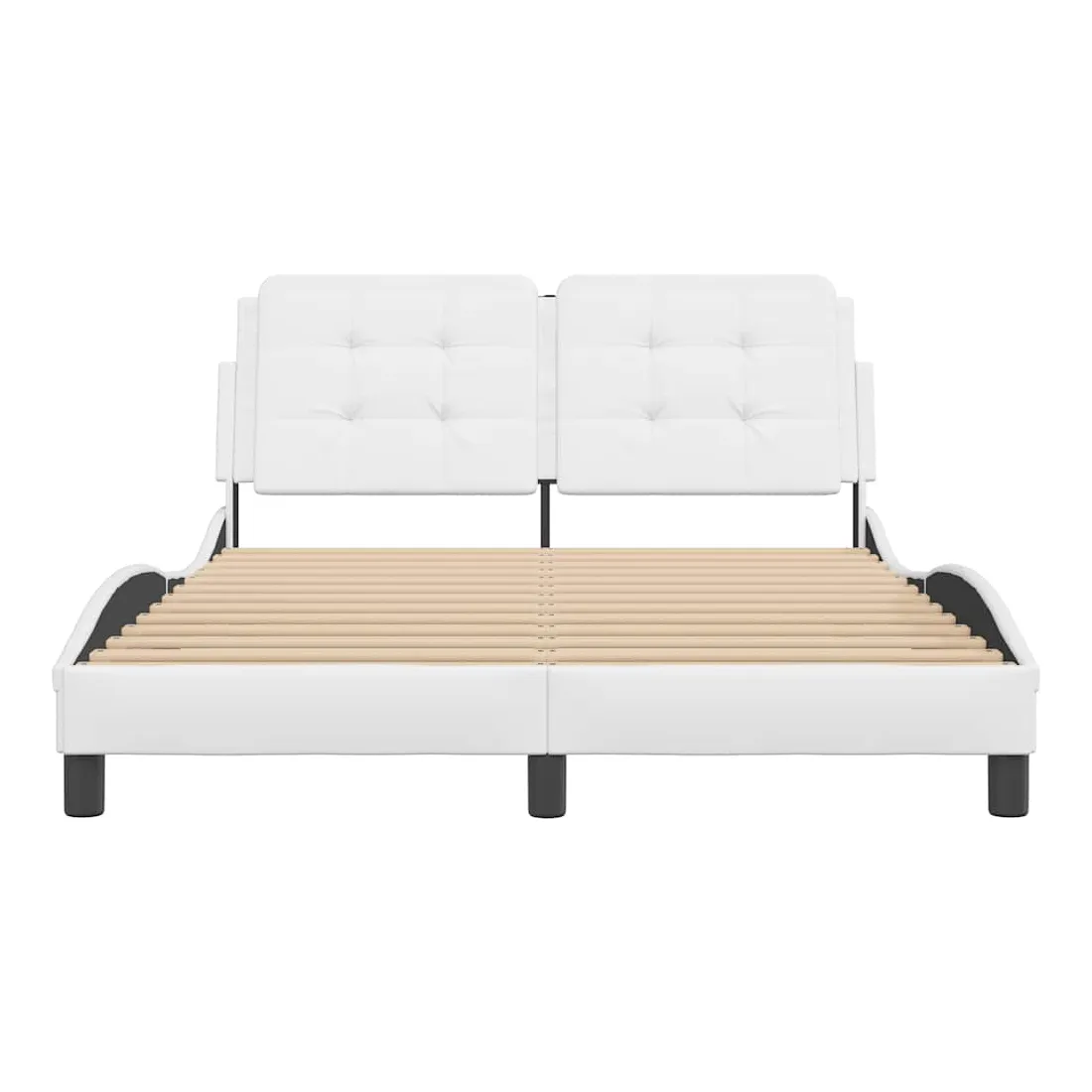 Obtenez une meilleure nuit de sommeil reposante grâce à ce cadre de lit avec tête de lit ! Il est un supplément accueillant à toute chambre à coucher. Similicuir durable : le similicuir de qualité supérieure est un matériau très durable. Il est résistant aux taches, ce qui le rend facile à nettoyer avec un chiffon humide. La surface lisse donne également un aspect luxueux et la beauté du cuir véritable.Lattes de contreplaqué : les lattes de contreplaqué assurent une bonne répartition du poids, garantissant que le matelas reste en place à chaque torsion de votre corps pendant le sommeil.Excellent soutien : l'oreiller de tête de lit est rembourré avec de la mousse pour un confort ultra doux et optimal vous offre un excellent soutien du dos lorsque vous êtes assis dans votre lit pour lire ou regarder la télévision.Design pratique : le coussin de tête de lit est doté d'une fermeture éclair pour une installation facile.Design latéral ondulé : l’aspect ondulé du cadre de lit est élégant et sophistiqué, ajoutant une touche moderne et élégante à votre décor, ce qui en fait le point central de votre chambre à coucher. Bon à savoir :Un matelas n'est pas inclus avec ce lit. Nous offrons une sélection variée de matelas. Vous pouvez consulter notre boutique pour trouver un matelas assorti.