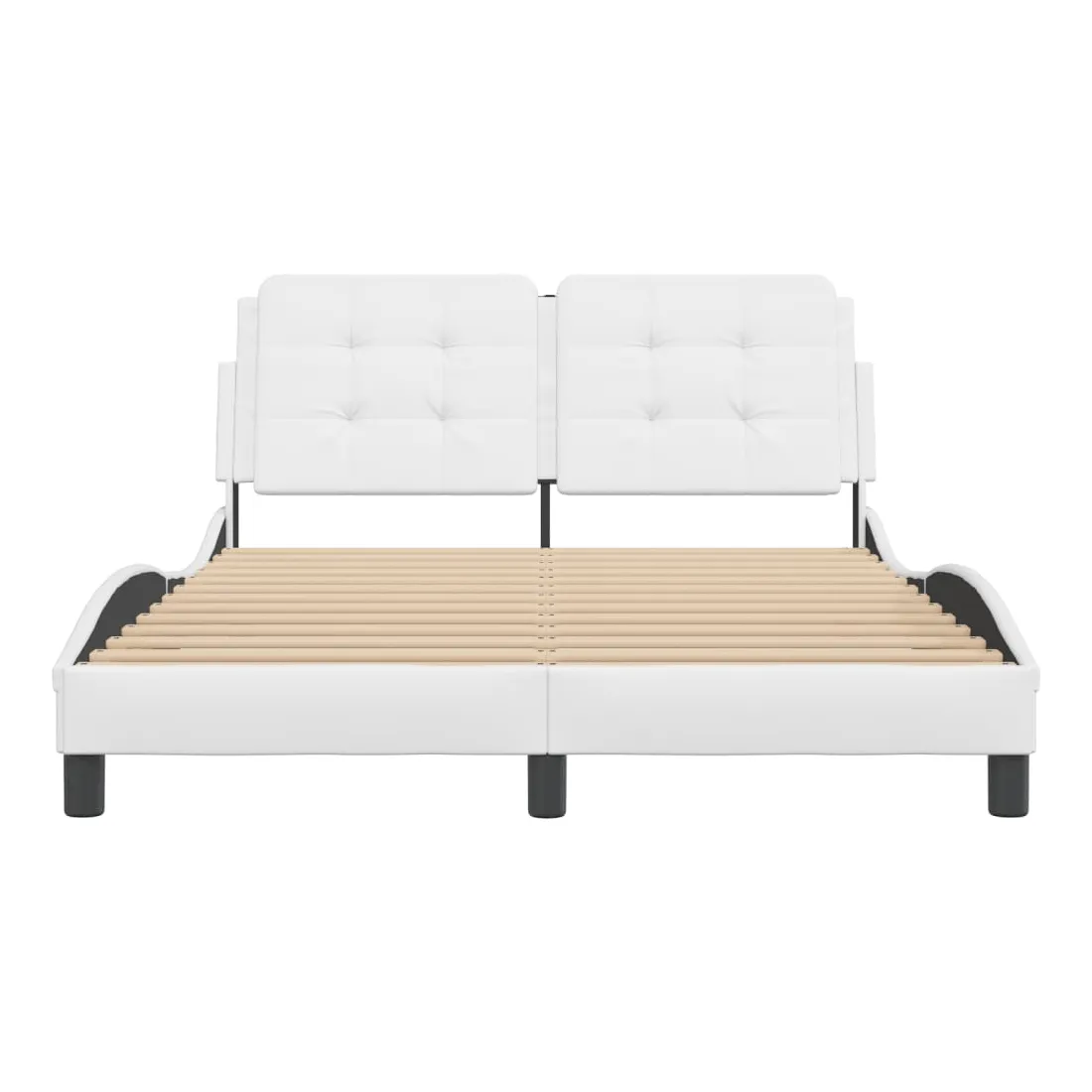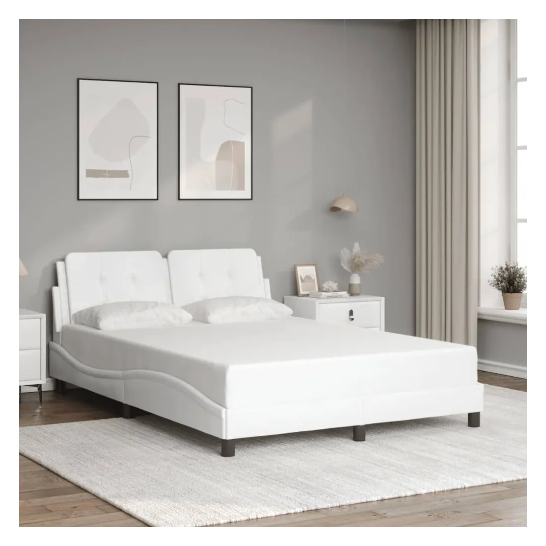 Obtenez une meilleure nuit de sommeil reposante grâce à ce cadre de lit avec tête de lit ! Il est un supplément accueillant à toute chambre à coucher. Similicuir durable : le similicuir de qualité supérieure est un matériau très durable. Il est résistant aux taches, ce qui le rend facile à nettoyer avec un chiffon humide. La surface lisse donne également un aspect luxueux et la beauté du cuir véritable.Lattes de contreplaqué : les lattes de contreplaqué assurent une bonne répartition du poids, garantissant que le matelas reste en place à chaque torsion de votre corps pendant le sommeil.Excellent soutien : l'oreiller de tête de lit est rembourré avec de la mousse pour un confort ultra doux et optimal vous offre un excellent soutien du dos lorsque vous êtes assis dans votre lit pour lire ou regarder la télévision.Design pratique : le coussin de tête de lit est doté d'une fermeture éclair pour une installation facile.Design latéral ondulé : l’aspect ondulé du cadre de lit est élégant et sophistiqué, ajoutant une touche moderne et élégante à votre décor, ce qui en fait le point central de votre chambre à coucher. Bon à savoir :Un matelas n'est pas inclus avec ce lit. Nous offrons une sélection variée de matelas. Vous pouvez consulter notre boutique pour trouver un matelas assorti.
