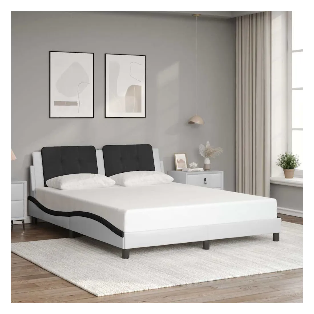 Cadre de lit sans matelas Zadar blanc et noir 160x200 cm similicuir