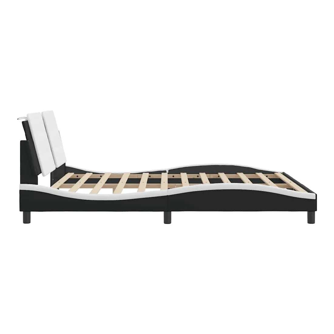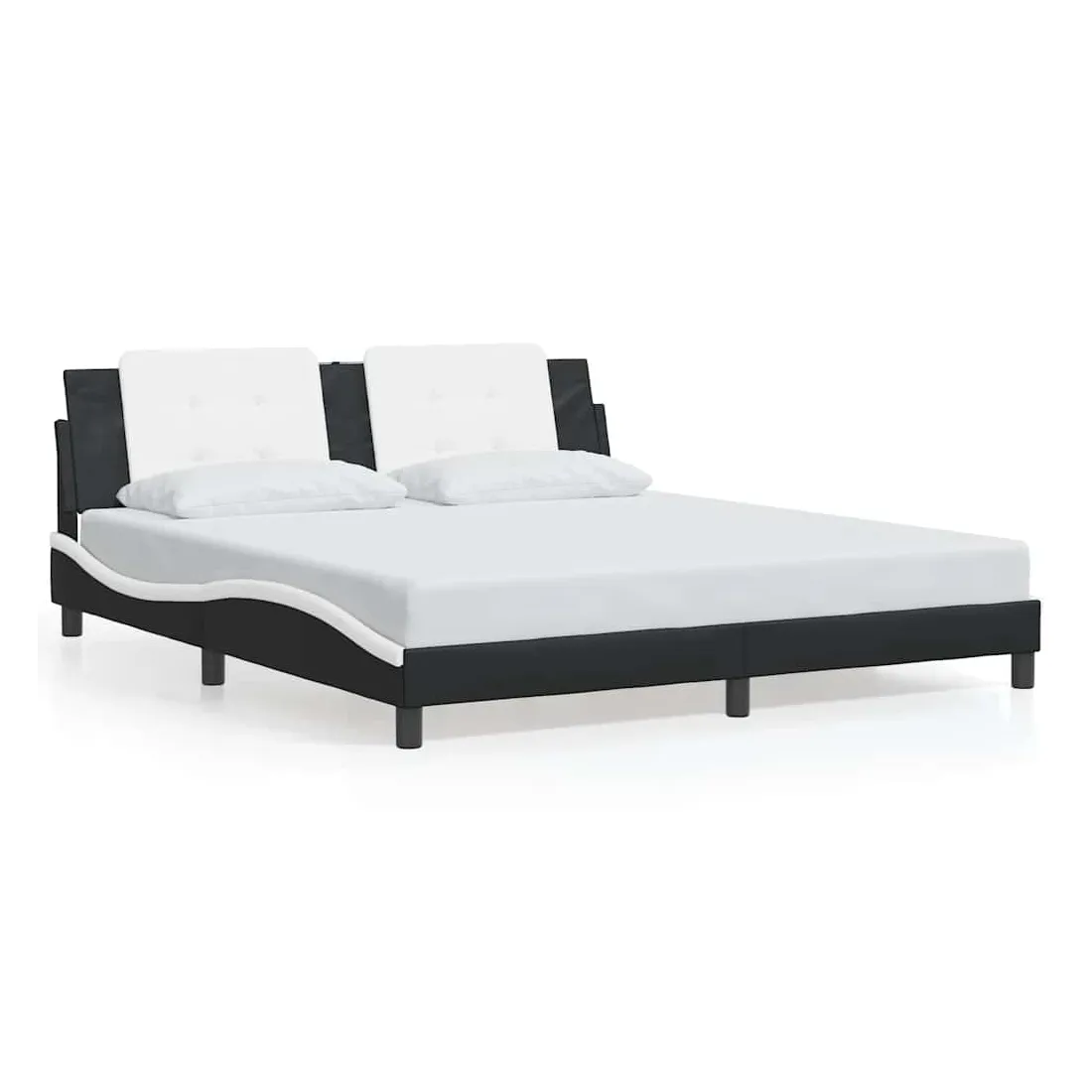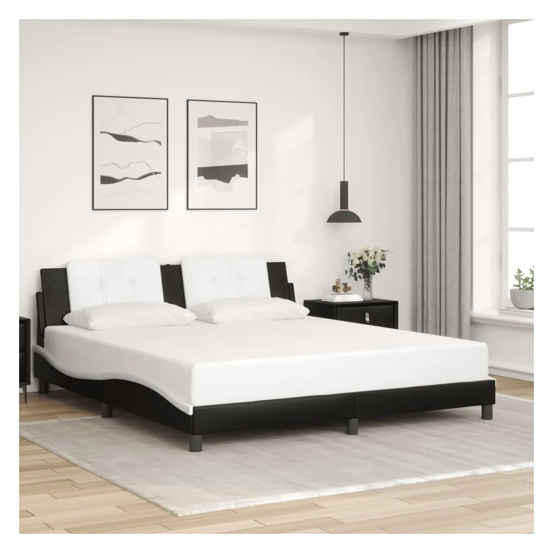 Obtenez une meilleure nuit de sommeil reposante grâce à ce cadre de lit avec tête de lit ! Il est un supplément accueillant à toute chambre à coucher. Similicuir durable : le similicuir de qualité supérieure est un matériau très durable. Il est résistant aux taches, ce qui le rend facile à nettoyer avec un chiffon humide. La surface lisse donne également un aspect luxueux et la beauté du cuir véritable.Lattes de contreplaqué : les lattes de contreplaqué assurent une bonne répartition du poids, garantissant que le matelas reste en place à chaque torsion de votre corps pendant le sommeil.Excellent soutien : l'oreiller de tête de lit est rembourré avec de la mousse pour un confort ultra doux et optimal vous offre un excellent soutien du dos lorsque vous êtes assis dans votre lit pour lire ou regarder la télévision.Design pratique : le coussin de tête de lit est doté d'une fermeture éclair pour une installation facile.Design latéral ondulé : l’aspect ondulé du cadre de lit est élégant et sophistiqué, ajoutant une touche moderne et élégante à votre décor, ce qui en fait le point central de votre chambre à coucher. Bon à savoir :Un matelas n'est pas inclus avec ce lit. Nous offrons une sélection variée de matelas. Vous pouvez consulter notre boutique pour trouver un matelas assorti.