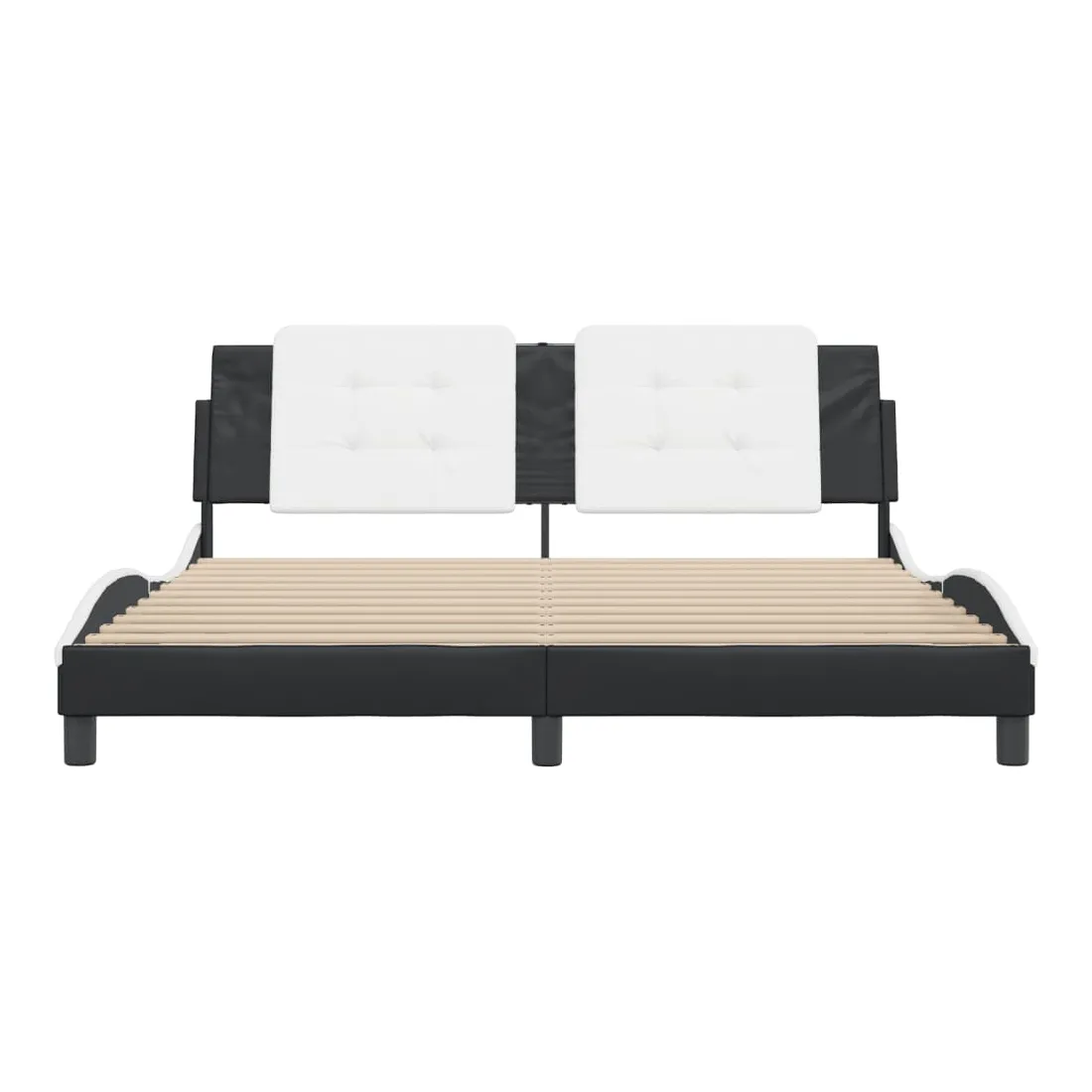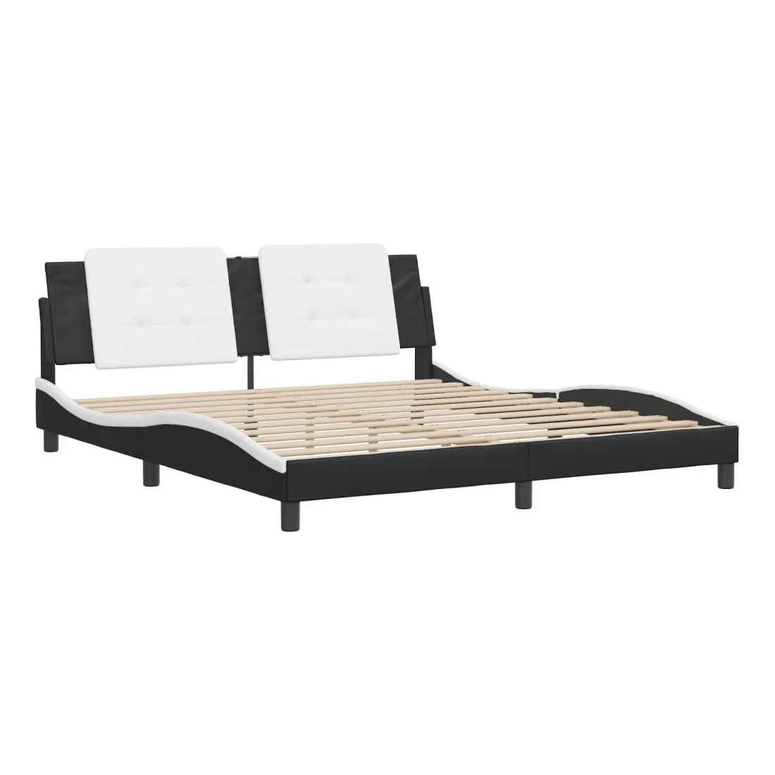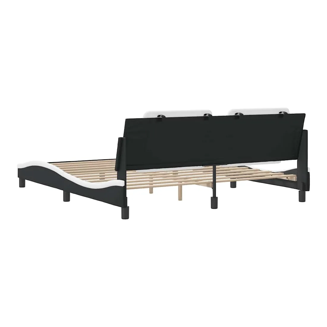 Obtenez une meilleure nuit de sommeil reposante grâce à ce cadre de lit avec tête de lit ! Il est un supplément accueillant à toute chambre à coucher. Similicuir durable : le similicuir de qualité supérieure est un matériau très durable. Il est résistant aux taches, ce qui le rend facile à nettoyer avec un chiffon humide. La surface lisse donne également un aspect luxueux et la beauté du cuir véritable.Lattes de contreplaqué : les lattes de contreplaqué assurent une bonne répartition du poids, garantissant que le matelas reste en place à chaque torsion de votre corps pendant le sommeil.Excellent soutien : l'oreiller de tête de lit est rembourré avec de la mousse pour un confort ultra doux et optimal vous offre un excellent soutien du dos lorsque vous êtes assis dans votre lit pour lire ou regarder la télévision.Design pratique : le coussin de tête de lit est doté d'une fermeture éclair pour une installation facile.Design latéral ondulé : l’aspect ondulé du cadre de lit est élégant et sophistiqué, ajoutant une touche moderne et élégante à votre décor, ce qui en fait le point central de votre chambre à coucher. Bon à savoir :Un matelas n'est pas inclus avec ce lit. Nous offrons une sélection variée de matelas. Vous pouvez consulter notre boutique pour trouver un matelas assorti.