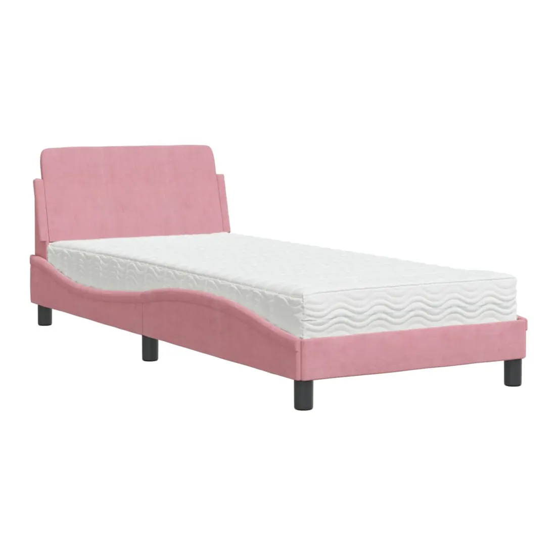 Obtenez une meilleure nuit de sommeil reposante grâce à ce lit avec matelas ! Il est un supplément accueillant à toute chambre à coucher. Velours doux : le velours est un tissu doux et confortable, agréable au toucher.Lattes de contreplaqué : les lattes de contreplaqué assurent une bonne répartition du poids, garantissant que le matelas reste en place à chaque torsion de votre corps pendant le sommeil.Excellent soutien : la tête de lit vous offre un excellent soutien du dos lorsque vous êtes assis dans votre lit pour lire ou regarder la télévision.Matelas en mousse : ce matelas de lit en tissu à 3 couches est rempli de mousse PU 22D pour un confort optimal. Il contribue à soulager la fatigue et à favoriser la circulation sanguine, vous offrant ainsi une relaxation complète et une bonne qualité de sommeil. En outre, le matelas est disponible en dureté H2 et H3, de sorte que vous pouvez simplement tourner le matelas pour choisir la dureté qui vous convient le mieux.Design latéral ondulé : l’aspect ondulé du cadre de lit est élégant et sophistiqué, ajoutant une touche moderne et élégante à votre décor, ce qui en fait le point central de votre chambre à coucher.
