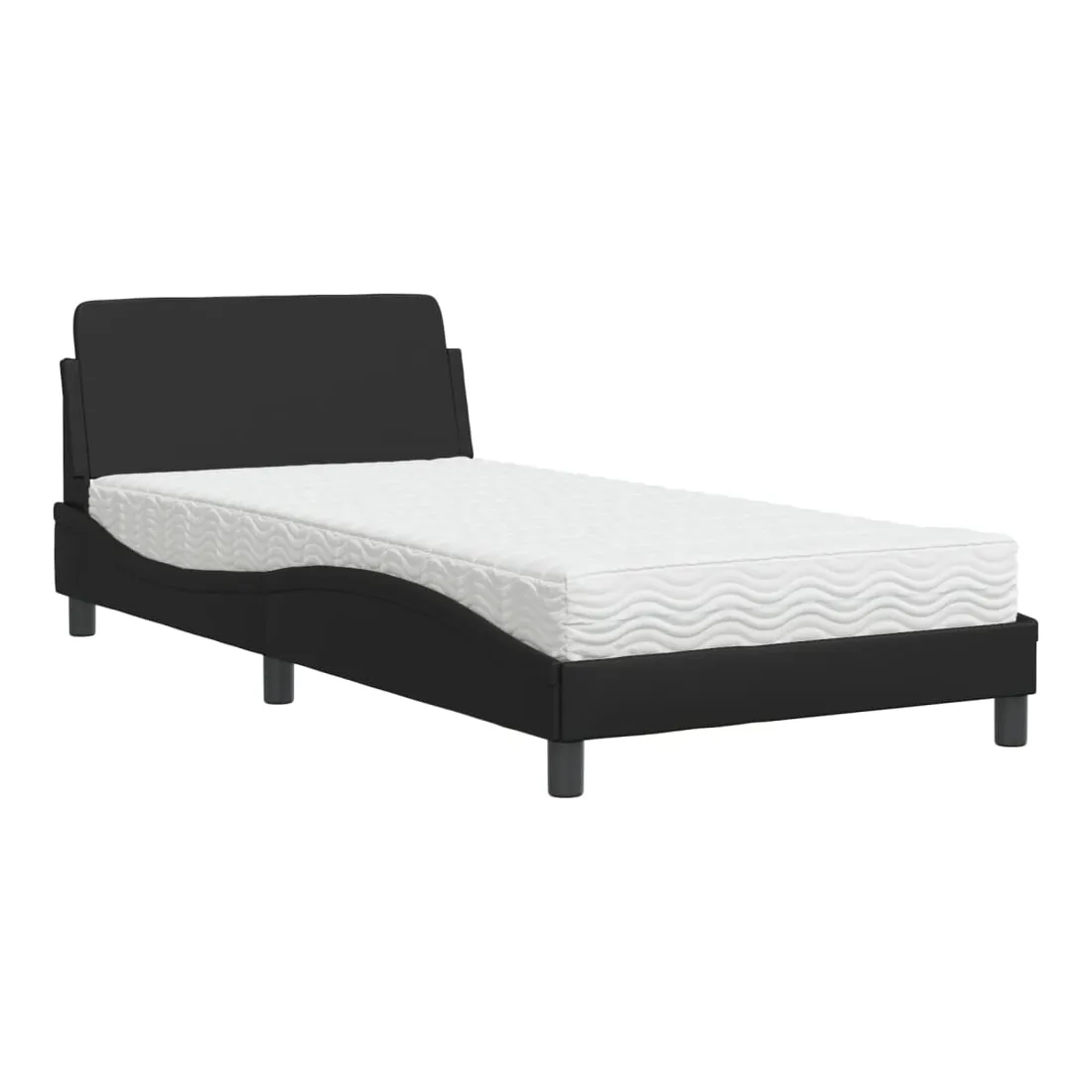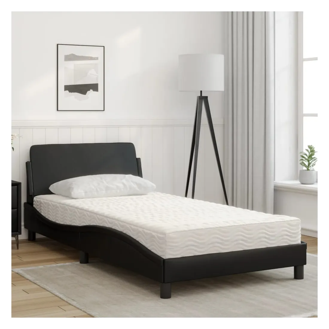 Obtenez une meilleure nuit de sommeil reposante grâce à ce lit avec matelas ! Il est un supplément accueillant à toute chambre à coucher. Similicuir durable : le similicuir de qualité supérieure est un matériau très durable. Il est résistant aux taches, ce qui le rend facile à nettoyer avec un chiffon humide. La surface lisse donne également un aspect luxueux et la beauté du cuir véritable.Lattes de contreplaqué : les lattes de contreplaqué assurent une bonne répartition du poids, garantissant que le matelas reste en place à chaque torsion de votre corps pendant le sommeil.Excellent soutien : la tête de lit vous offre un excellent soutien du dos lorsque vous êtes assis dans votre lit pour lire ou regarder la télévision.Matelas en mousse : ce matelas de lit en tissu à 3 couches est rempli de mousse PU 22D pour un confort optimal. Il contribue à soulager la fatigue et à favoriser la circulation sanguine, vous offrant ainsi une relaxation complète et une bonne qualité de sommeil. En outre, le matelas est disponible en dureté H2 et H3, de sorte que vous pouvez simplement tourner le matelas pour choisir la dureté qui vous convient le mieux.Design latéral ondulé : l’aspect ondulé du cadre de lit est élégant et sophistiqué, ajoutant une touche moderne et élégante à votre décor, ce qui en fait le point central de votre chambre à coucher.