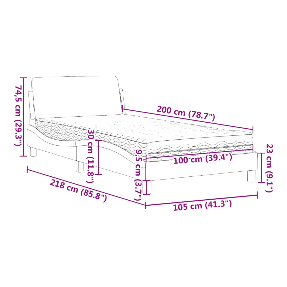 Obtenez une meilleure nuit de sommeil reposante grâce à ce lit avec matelas ! Il est un supplément accueillant à toute chambre à coucher. Similicuir durable : le similicuir de qualité supérieure est un matériau très durable. Il est résistant aux taches, ce qui le rend facile à nettoyer avec un chiffon humide. La surface lisse donne également un aspect luxueux et la beauté du cuir véritable.Lattes de contreplaqué : les lattes de contreplaqué assurent une bonne répartition du poids, garantissant que le matelas reste en place à chaque torsion de votre corps pendant le sommeil.Excellent soutien : la tête de lit vous offre un excellent soutien du dos lorsque vous êtes assis dans votre lit pour lire ou regarder la télévision.Matelas en mousse : ce matelas de lit en tissu à 3 couches est rempli de mousse PU 22D pour un confort optimal. Il contribue à soulager la fatigue et à favoriser la circulation sanguine, vous offrant ainsi une relaxation complète et une bonne qualité de sommeil. En outre, le matelas est disponible en dureté H2 et H3, de sorte que vous pouvez simplement tourner le matelas pour choisir la dureté qui vous convient le mieux.Design latéral ondulé : l’aspect ondulé du cadre de lit est élégant et sophistiqué, ajoutant une touche moderne et élégante à votre décor, ce qui en fait le point central de votre chambre à coucher.