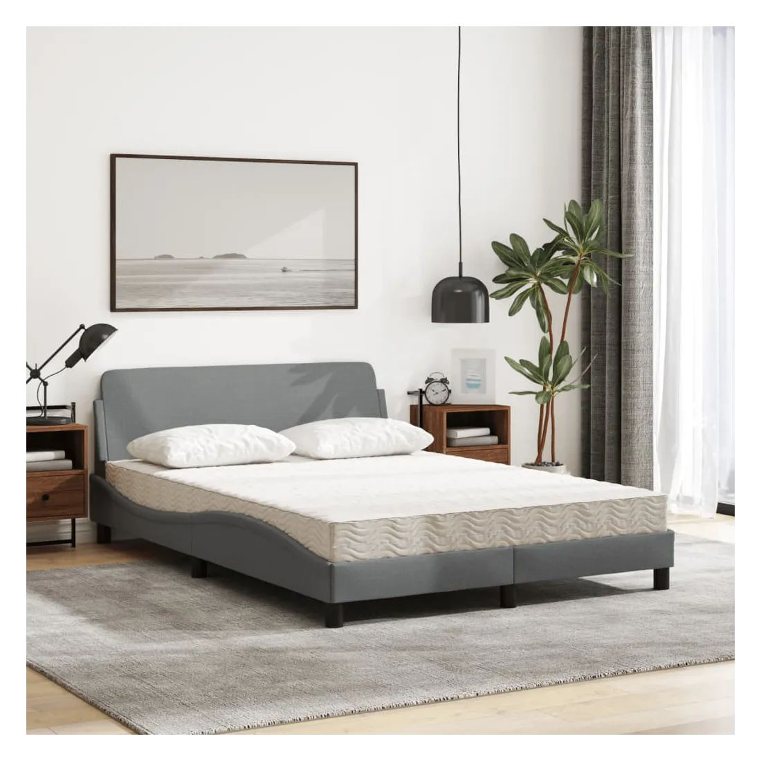 Obtenez une meilleure nuit de sommeil reposante grâce à ce lit avec matelas ! Il est un supplément accueillant à toute chambre à coucher. Tissu durable : le tissu présente un aspect simple et épuré, et il est respirant et durable.Lattes de contreplaqué : les lattes de contreplaqué assurent une bonne répartition du poids, garantissant que le matelas reste en place à chaque torsion de votre corps pendant le sommeil.Excellent soutien : la tête de lit vous offre un excellent soutien du dos lorsque vous êtes assis dans votre lit pour lire ou regarder la télévision.Matelas en mousse : ce matelas de lit en tissu à 3 couches est rempli de mousse PU 22D pour un confort optimal. Il contribue à soulager la fatigue et à favoriser la circulation sanguine, vous offrant ainsi une relaxation complète et une bonne qualité de sommeil. En outre, le matelas est disponible en dureté H2 et H3, de sorte que vous pouvez simplement tourner le matelas pour choisir la dureté qui vous convient le mieux.Design latéral ondulé : l’aspect ondulé du cadre de lit est élégant et sophistiqué, ajoutant une touche moderne et élégante à votre décor, ce qui en fait le point central de votre chambre à coucher.