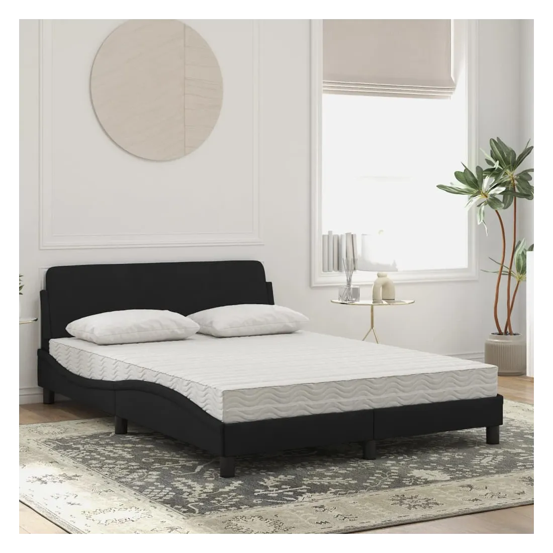 Obtenez une meilleure nuit de sommeil reposante grâce à ce lit avec matelas ! Il est un supplément accueillant à toute chambre à coucher. Velours doux : le velours est un tissu doux et confortable, agréable au toucher.Lattes de contreplaqué : les lattes de contreplaqué assurent une bonne répartition du poids, garantissant que le matelas reste en place à chaque torsion de votre corps pendant le sommeil.Excellent soutien : la tête de lit vous offre un excellent soutien du dos lorsque vous êtes assis dans votre lit pour lire ou regarder la télévision.Matelas en mousse : ce matelas de lit en tissu à 3 couches est rempli de mousse PU 22D pour un confort optimal. Il contribue à soulager la fatigue et à favoriser la circulation sanguine, vous offrant ainsi une relaxation complète et une bonne qualité de sommeil. En outre, le matelas est disponible en dureté H2 et H3, de sorte que vous pouvez simplement tourner le matelas pour choisir la dureté qui vous convient le mieux.Design latéral ondulé : l’aspect ondulé du cadre de lit est élégant et sophistiqué, ajoutant une touche moderne et élégante à votre décor, ce qui en fait le point central de votre chambre à coucher.