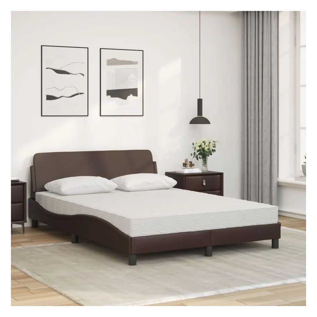 Obtenez une meilleure nuit de sommeil reposante grâce à ce lit avec matelas ! Il est un supplément accueillant à toute chambre à coucher. Similicuir durable : le similicuir de qualité supérieure est un matériau très durable. Il est résistant aux taches, ce qui le rend facile à nettoyer avec un chiffon humide. La surface lisse donne également un aspect luxueux et la beauté du cuir véritable.Lattes de contreplaqué : les lattes de contreplaqué assurent une bonne répartition du poids, garantissant que le matelas reste en place à chaque torsion de votre corps pendant le sommeil.Excellent soutien : la tête de lit vous offre un excellent soutien du dos lorsque vous êtes assis dans votre lit pour lire ou regarder la télévision.Matelas en mousse : ce matelas de lit en tissu à 3 couches est rempli de mousse PU 22D pour un confort optimal. Il contribue à soulager la fatigue et à favoriser la circulation sanguine, vous offrant ainsi une relaxation complète et une bonne qualité de sommeil. En outre, le matelas est disponible en dureté H2 et H3, de sorte que vous pouvez simplement tourner le matelas pour choisir la dureté qui vous convient le mieux.Design latéral ondulé : l’aspect ondulé du cadre de lit est élégant et sophistiqué, ajoutant une touche moderne et élégante à votre décor, ce qui en fait le point central de votre chambre à coucher.