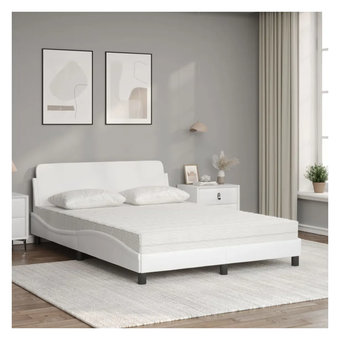 Obtenez une meilleure nuit de sommeil reposante grâce à ce lit avec matelas ! Il est un supplément accueillant à toute chambre à coucher. Similicuir durable : le similicuir de qualité supérieure est un matériau très durable. Il est résistant aux taches, ce qui le rend facile à nettoyer avec un chiffon humide. La surface lisse donne également un aspect luxueux et la beauté du cuir véritable.Lattes de contreplaqué : les lattes de contreplaqué assurent une bonne répartition du poids, garantissant que le matelas reste en place à chaque torsion de votre corps pendant le sommeil.Excellent soutien : la tête de lit vous offre un excellent soutien du dos lorsque vous êtes assis dans votre lit pour lire ou regarder la télévision.Matelas en mousse : ce matelas de lit en tissu à 3 couches est rempli de mousse PU 22D pour un confort optimal. Il contribue à soulager la fatigue et à favoriser la circulation sanguine, vous offrant ainsi une relaxation complète et une bonne qualité de sommeil. En outre, le matelas est disponible en dureté H2 et H3, de sorte que vous pouvez simplement tourner le matelas pour choisir la dureté qui vous convient le mieux.Design latéral ondulé : l’aspect ondulé du cadre de lit est élégant et sophistiqué, ajoutant une touche moderne et élégante à votre décor, ce qui en fait le point central de votre chambre à coucher.