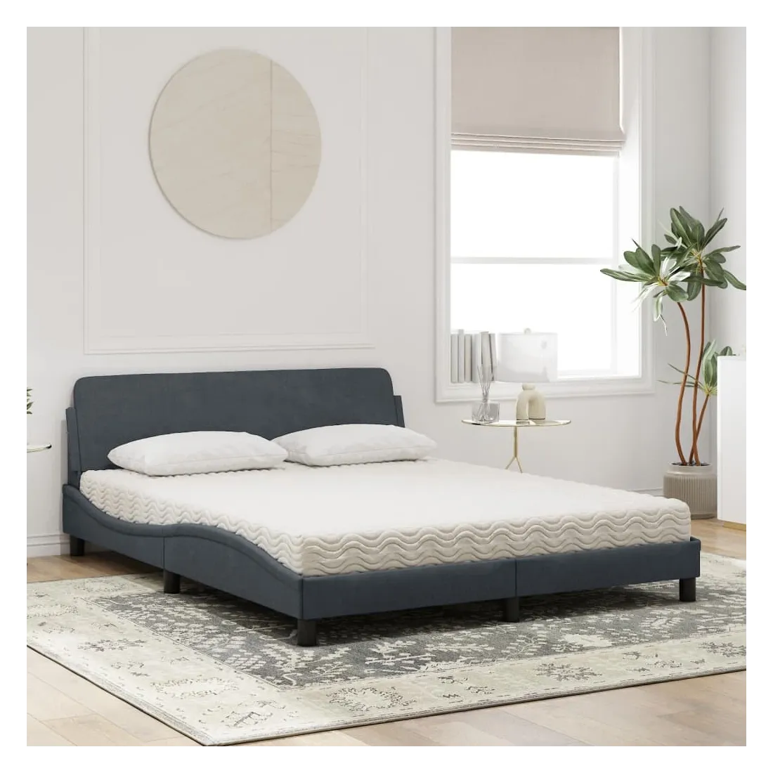Obtenez une meilleure nuit de sommeil reposante grâce à ce lit avec matelas ! Il est un supplément accueillant à toute chambre à coucher. Velours doux : le velours est un tissu doux et confortable, agréable au toucher.Lattes de contreplaqué : les lattes de contreplaqué assurent une bonne répartition du poids, garantissant que le matelas reste en place à chaque torsion de votre corps pendant le sommeil.Excellent soutien : la tête de lit vous offre un excellent soutien du dos lorsque vous êtes assis dans votre lit pour lire ou regarder la télévision.Matelas en mousse : ce matelas de lit en tissu à 3 couches est rempli de mousse PU 22D pour un confort optimal. Il contribue à soulager la fatigue et à favoriser la circulation sanguine, vous offrant ainsi une relaxation complète et une bonne qualité de sommeil. En outre, le matelas est disponible en dureté H2 et H3, de sorte que vous pouvez simplement tourner le matelas pour choisir la dureté qui vous convient le mieux.Design latéral ondulé : l’aspect ondulé du cadre de lit est élégant et sophistiqué, ajoutant une touche moderne et élégante à votre décor, ce qui en fait le point central de votre chambre à coucher.