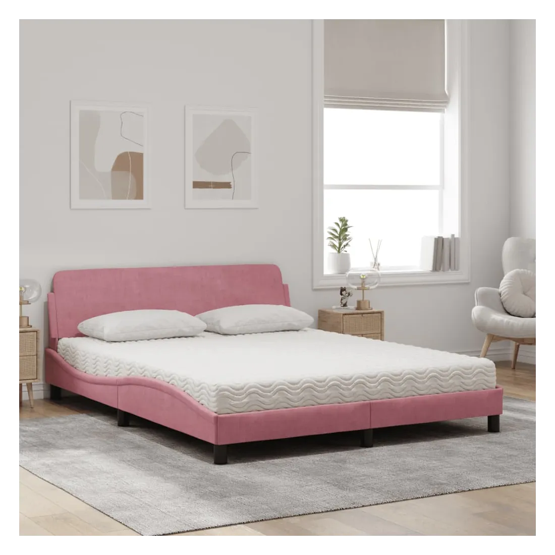 Obtenez une meilleure nuit de sommeil reposante grâce à ce lit avec matelas ! Il est un supplément accueillant à toute chambre à coucher. Velours doux : le velours est un tissu doux et confortable, agréable au toucher.Lattes de contreplaqué : les lattes de contreplaqué assurent une bonne répartition du poids, garantissant que le matelas reste en place à chaque torsion de votre corps pendant le sommeil.Excellent soutien : la tête de lit vous offre un excellent soutien du dos lorsque vous êtes assis dans votre lit pour lire ou regarder la télévision.Matelas en mousse : ce matelas de lit en tissu à 3 couches est rempli de mousse PU 22D pour un confort optimal. Il contribue à soulager la fatigue et à favoriser la circulation sanguine, vous offrant ainsi une relaxation complète et une bonne qualité de sommeil. En outre, le matelas est disponible en dureté H2 et H3, de sorte que vous pouvez simplement tourner le matelas pour choisir la dureté qui vous convient le mieux.Design latéral ondulé : l’aspect ondulé du cadre de lit est élégant et sophistiqué, ajoutant une touche moderne et élégante à votre décor, ce qui en fait le point central de votre chambre à coucher.