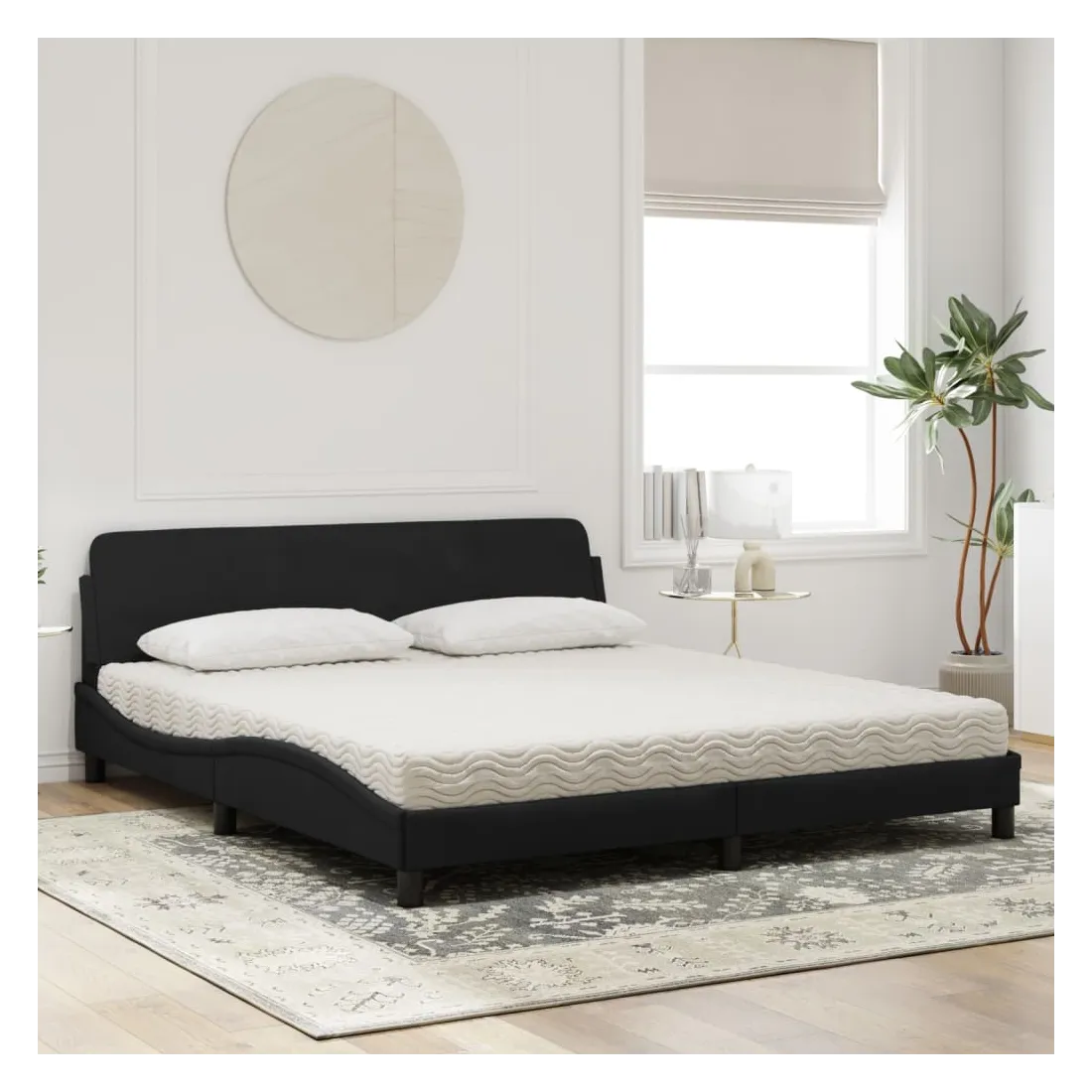 Obtenez une meilleure nuit de sommeil reposante grâce à ce lit avec matelas ! Il est un supplément accueillant à toute chambre à coucher. Velours doux : le velours est un tissu doux et confortable, agréable au toucher.Lattes de contreplaqué : les lattes de contreplaqué assurent une bonne répartition du poids, garantissant que le matelas reste en place à chaque torsion de votre corps pendant le sommeil.Excellent soutien : la tête de lit vous offre un excellent soutien du dos lorsque vous êtes assis dans votre lit pour lire ou regarder la télévision.Matelas en mousse : ce matelas de lit en tissu à 3 couches est rempli de mousse PU 22D pour un confort optimal. Il contribue à soulager la fatigue et à favoriser la circulation sanguine, vous offrant ainsi une relaxation complète et une bonne qualité de sommeil. En outre, le matelas est disponible en dureté H2 et H3, de sorte que vous pouvez simplement tourner le matelas pour choisir la dureté qui vous convient le mieux.Design latéral ondulé : l’aspect ondulé du cadre de lit est élégant et sophistiqué, ajoutant une touche moderne et élégante à votre décor, ce qui en fait le point central de votre chambre à coucher.