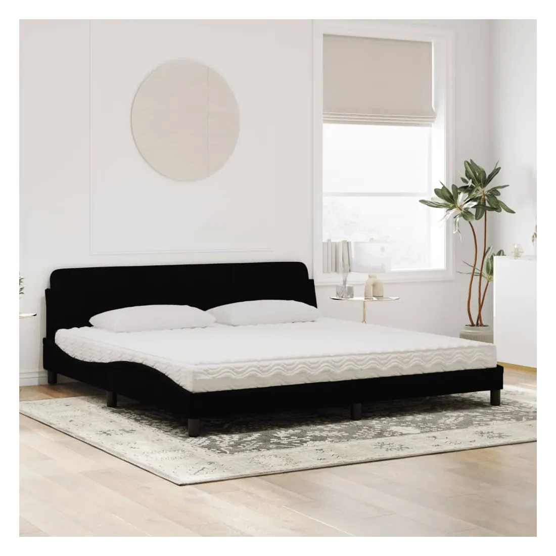 Obtenez une meilleure nuit de sommeil reposante grâce à ce lit avec matelas ! Il est un supplément accueillant à toute chambre à coucher. Velours doux : le velours est un tissu doux et confortable, agréable au toucher.Lattes de contreplaqué : les lattes de contreplaqué assurent une bonne répartition du poids, garantissant que le matelas reste en place à chaque torsion de votre corps pendant le sommeil.Excellent soutien : la tête de lit vous offre un excellent soutien du dos lorsque vous êtes assis dans votre lit pour lire ou regarder la télévision.Matelas en mousse : ce matelas de lit en tissu à 3 couches est rempli de mousse PU 22D pour un confort optimal. Il contribue à soulager la fatigue et à favoriser la circulation sanguine, vous offrant ainsi une relaxation complète et une bonne qualité de sommeil. En outre, le matelas est disponible en dureté H2 et H3, de sorte que vous pouvez simplement tourner le matelas pour choisir la dureté qui vous convient le mieux.Design latéral ondulé : l’aspect ondulé du cadre de lit est élégant et sophistiqué, ajoutant une touche moderne et élégante à votre décor, ce qui en fait le point central de votre chambre à coucher.