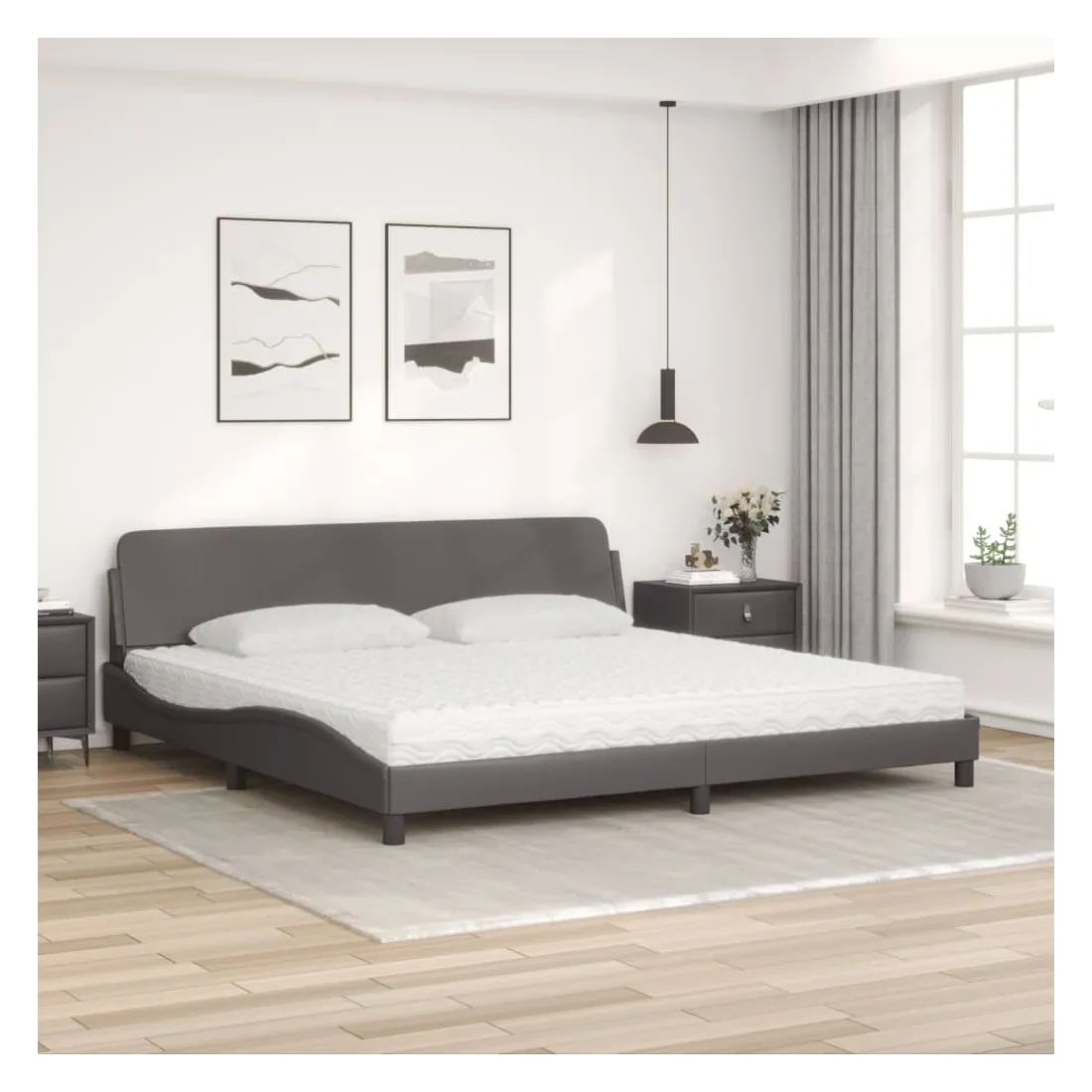 Obtenez une meilleure nuit de sommeil reposante grâce à ce lit avec matelas ! Il est un supplément accueillant à toute chambre à coucher. Similicuir durable : le similicuir de qualité supérieure est un matériau très durable. Il est résistant aux taches, ce qui le rend facile à nettoyer avec un chiffon humide. La surface lisse donne également un aspect luxueux et la beauté du cuir véritable.Lattes de contreplaqué : les lattes de contreplaqué assurent une bonne répartition du poids, garantissant que le matelas reste en place à chaque torsion de votre corps pendant le sommeil.Excellent soutien : la tête de lit vous offre un excellent soutien du dos lorsque vous êtes assis dans votre lit pour lire ou regarder la télévision.Matelas en mousse : ce matelas de lit en tissu à 3 couches est rempli de mousse PU 22D pour un confort optimal. Il contribue à soulager la fatigue et à favoriser la circulation sanguine, vous offrant ainsi une relaxation complète et une bonne qualité de sommeil. En outre, le matelas est disponible en dureté H2 et H3, de sorte que vous pouvez simplement tourner le matelas pour choisir la dureté qui vous convient le mieux.Design latéral ondulé : l’aspect ondulé du cadre de lit est élégant et sophistiqué, ajoutant une touche moderne et élégante à votre décor, ce qui en fait le point central de votre chambre à coucher.