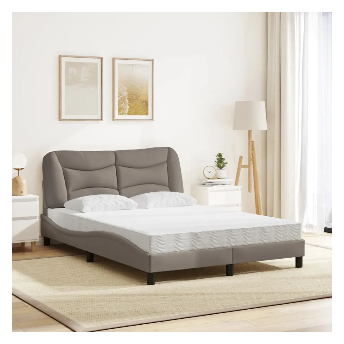 Obtenez une meilleure nuit de sommeil reposante grâce à ce lit avec matelas ! Il est un supplément accueillant à toute chambre à coucher. Tissu durable : le tissu présente un aspect simple et épuré, et il est respirant et durable.Lattes de contreplaqué : les lattes de contreplaqué assurent une bonne répartition du poids, garantissant que le matelas reste en place à chaque torsion de votre corps pendant le sommeil.Excellent soutien : la tête de lit vous offre un excellent soutien du dos lorsque vous êtes assis dans votre lit pour lire ou regarder la télévision.Matelas en mousse : ce matelas de lit en tissu à 3 couches est rempli de mousse PU 22D pour un confort optimal. Il contribue à soulager la fatigue et à favoriser la circulation sanguine, vous offrant ainsi une relaxation complète et une bonne qualité de sommeil. En outre, le matelas est disponible en dureté H2 et H3, de sorte que vous pouvez simplement tourner le matelas pour choisir la dureté qui vous convient le mieux.Design latéral ondulé : l’aspect ondulé du cadre de lit est élégant et sophistiqué, ajoutant une touche moderne et élégante à votre décor, ce qui en fait le point central de votre chambre à coucher.