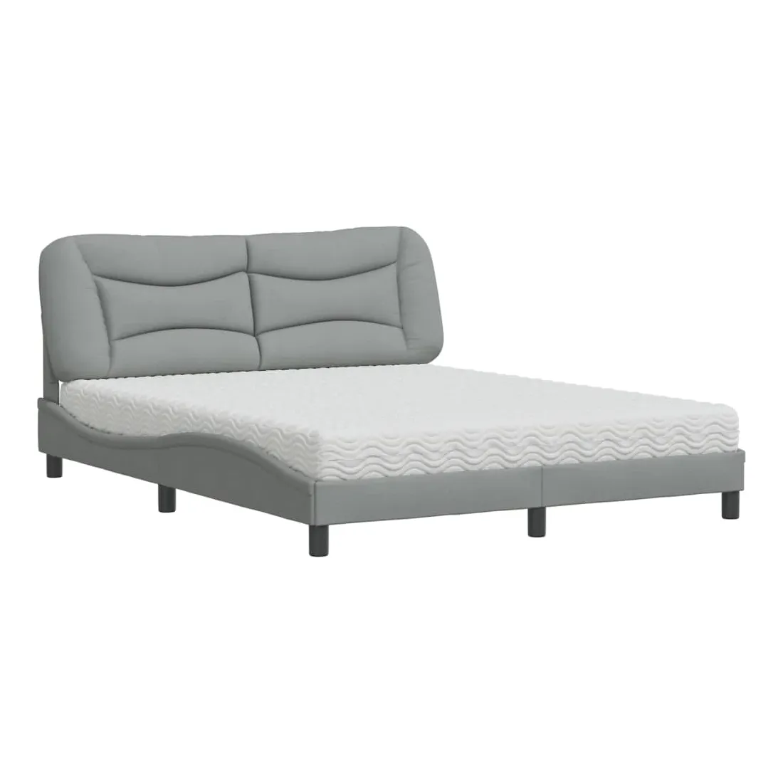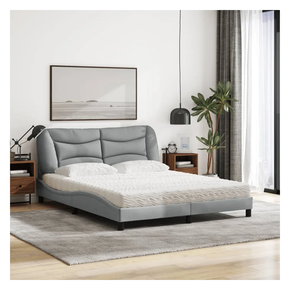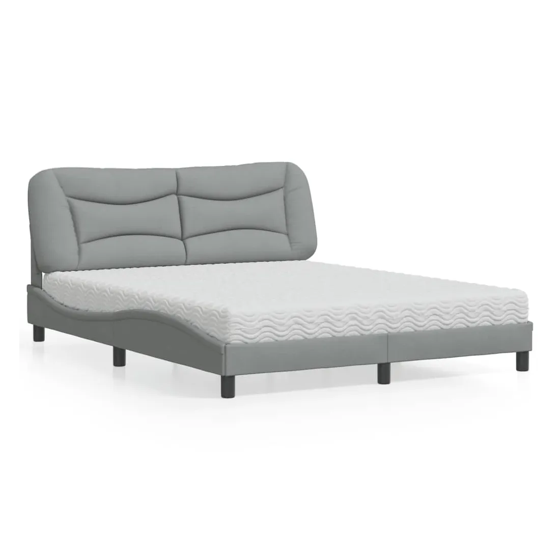 Obtenez une meilleure nuit de sommeil reposante grâce à ce lit avec matelas ! Il est un supplément accueillant à toute chambre à coucher. Tissu durable : le tissu présente un aspect simple et épuré, et il est respirant et durable.Lattes de contreplaqué : les lattes de contreplaqué assurent une bonne répartition du poids, garantissant que le matelas reste en place à chaque torsion de votre corps pendant le sommeil.Excellent soutien : la tête de lit vous offre un excellent soutien du dos lorsque vous êtes assis dans votre lit pour lire ou regarder la télévision.Matelas en mousse : ce matelas de lit en tissu à 3 couches est rempli de mousse PU 22D pour un confort optimal. Il contribue à soulager la fatigue et à favoriser la circulation sanguine, vous offrant ainsi une relaxation complète et une bonne qualité de sommeil. En outre, le matelas est disponible en dureté H2 et H3, de sorte que vous pouvez simplement tourner le matelas pour choisir la dureté qui vous convient le mieux.Design latéral ondulé : l’aspect ondulé du cadre de lit est élégant et sophistiqué, ajoutant une touche moderne et élégante à votre décor, ce qui en fait le point central de votre chambre à coucher.