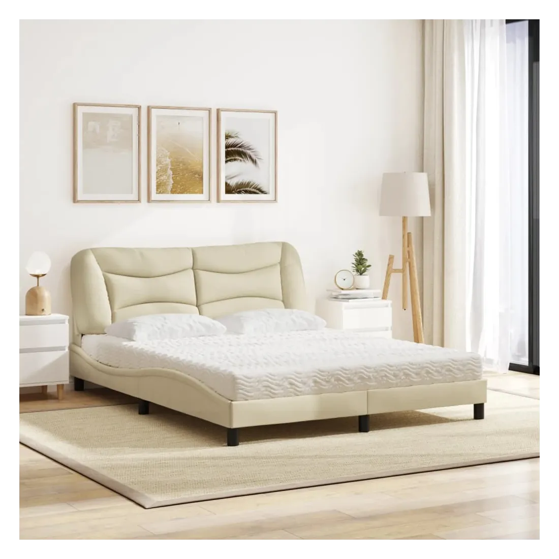 Obtenez une meilleure nuit de sommeil reposante grâce à ce lit avec matelas ! Il est un supplément accueillant à toute chambre à coucher. Tissu durable : le tissu présente un aspect simple et épuré, et il est respirant et durable.Lattes de contreplaqué : les lattes de contreplaqué assurent une bonne répartition du poids, garantissant que le matelas reste en place à chaque torsion de votre corps pendant le sommeil.Excellent soutien : la tête de lit vous offre un excellent soutien du dos lorsque vous êtes assis dans votre lit pour lire ou regarder la télévision.Matelas en mousse : ce matelas de lit en tissu à 3 couches est rempli de mousse PU 22D pour un confort optimal. Il contribue à soulager la fatigue et à favoriser la circulation sanguine, vous offrant ainsi une relaxation complète et une bonne qualité de sommeil. En outre, le matelas est disponible en dureté H2 et H3, de sorte que vous pouvez simplement tourner le matelas pour choisir la dureté qui vous convient le mieux.Design latéral ondulé : l’aspect ondulé du cadre de lit est élégant et sophistiqué, ajoutant une touche moderne et élégante à votre décor, ce qui en fait le point central de votre chambre à coucher.