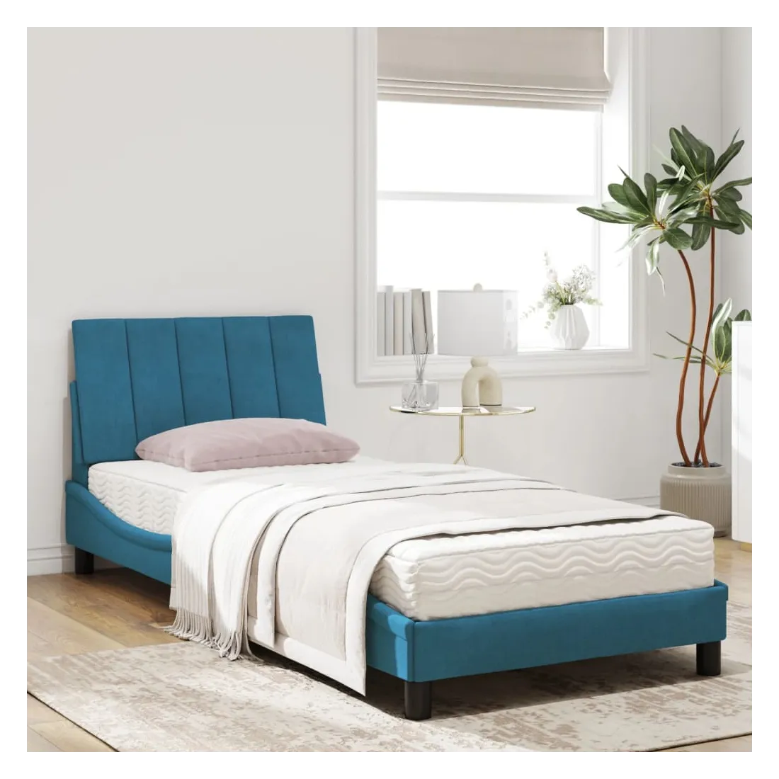 Obtenez une meilleure nuit de sommeil reposante grâce à ce lit avec matelas ! Il est un supplément accueillant à toute chambre à coucher. Velours doux : le velours est un tissu doux et confortable, agréable au toucher.Lattes de contreplaqué : les lattes de contreplaqué assurent une bonne répartition du poids, garantissant que le matelas reste en place à chaque torsion de votre corps pendant le sommeil.Excellent soutien : la tête de lit vous offre un excellent soutien du dos lorsque vous êtes assis dans votre lit pour lire ou regarder la télévision.Matelas en mousse : ce matelas de lit en tissu à 3 couches est rempli de mousse PU 22D pour un confort optimal. Il contribue à soulager la fatigue et à favoriser la circulation sanguine, vous offrant ainsi une relaxation complète et une bonne qualité de sommeil. En outre, le matelas est disponible en dureté H2 et H3, de sorte que vous pouvez simplement tourner le matelas pour choisir la dureté qui vous convient le mieux.Design latéral ondulé : l’aspect ondulé du cadre de lit est élégant et sophistiqué, ajoutant une touche moderne et élégante à votre décor, ce qui en fait le point central de votre chambre à coucher.