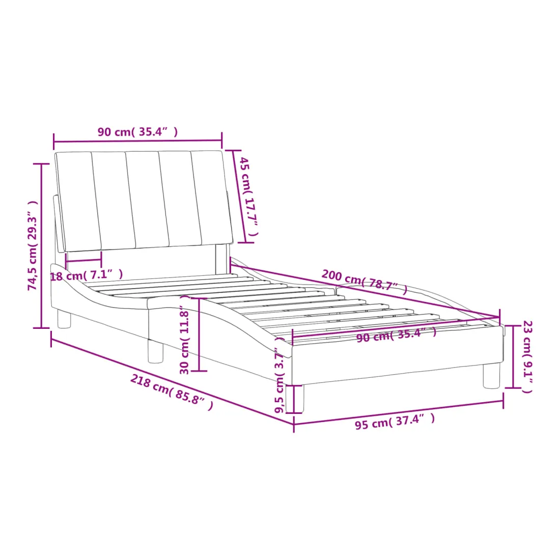 - Dimensions totales : 218 x 95 x 74,5 cm (L x l x H)