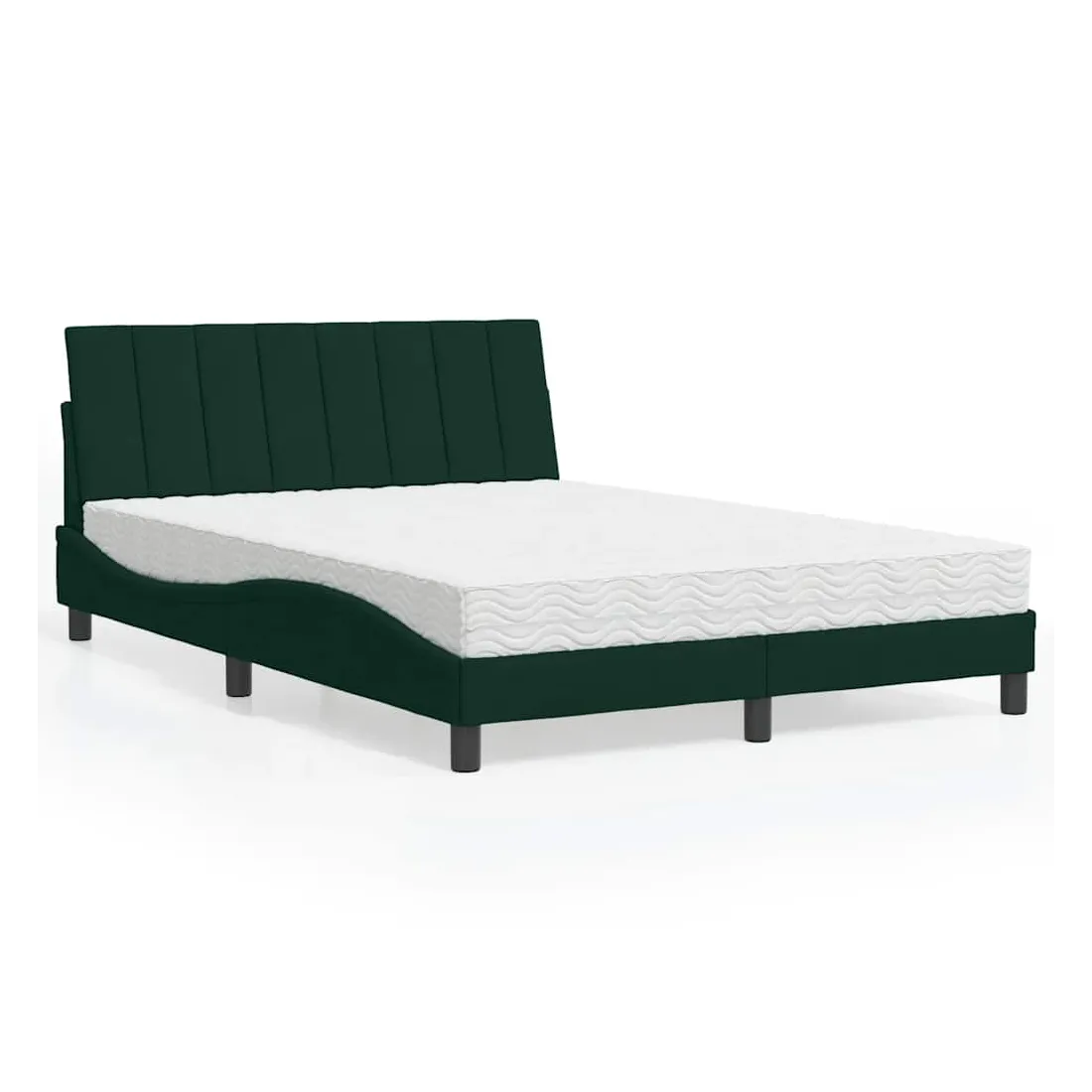 Lit avec matelas Hanko vert foncé 140x200 cm velours
