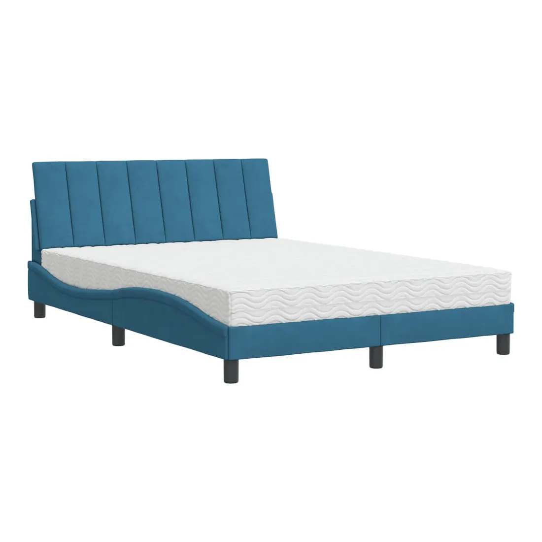 Lit avec matelas Hanko bleu 140x200 cm velours