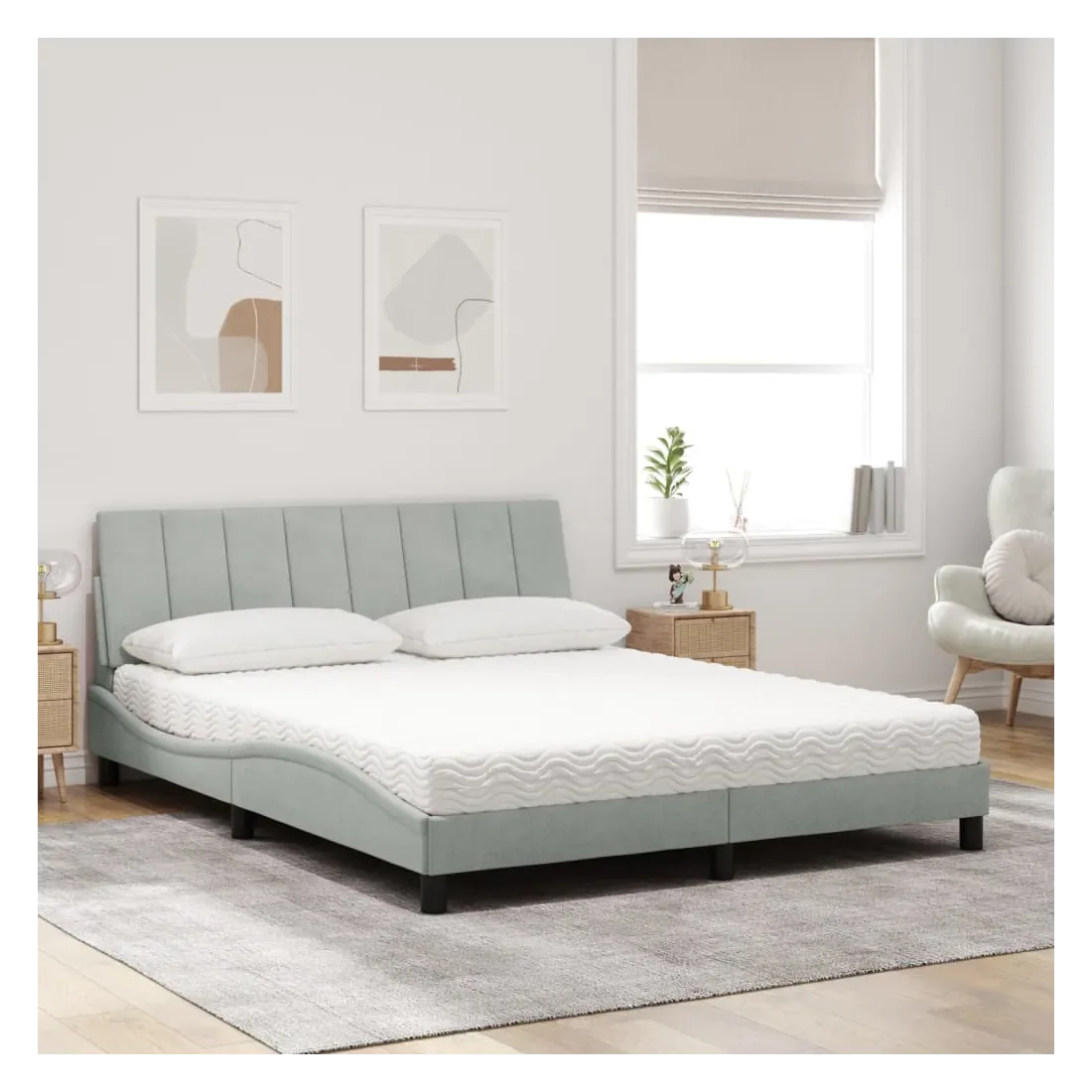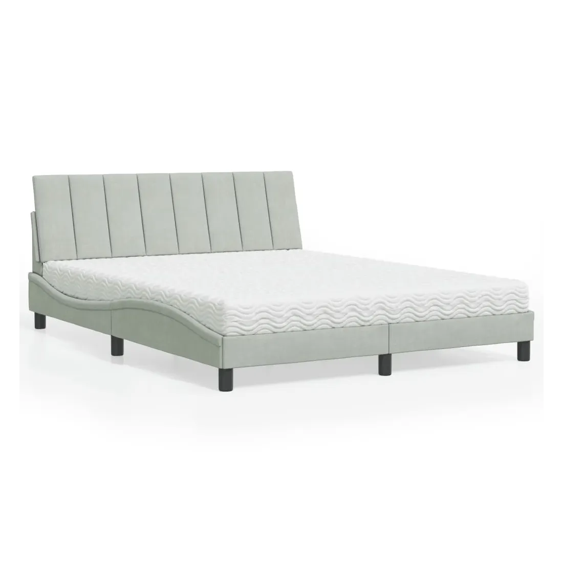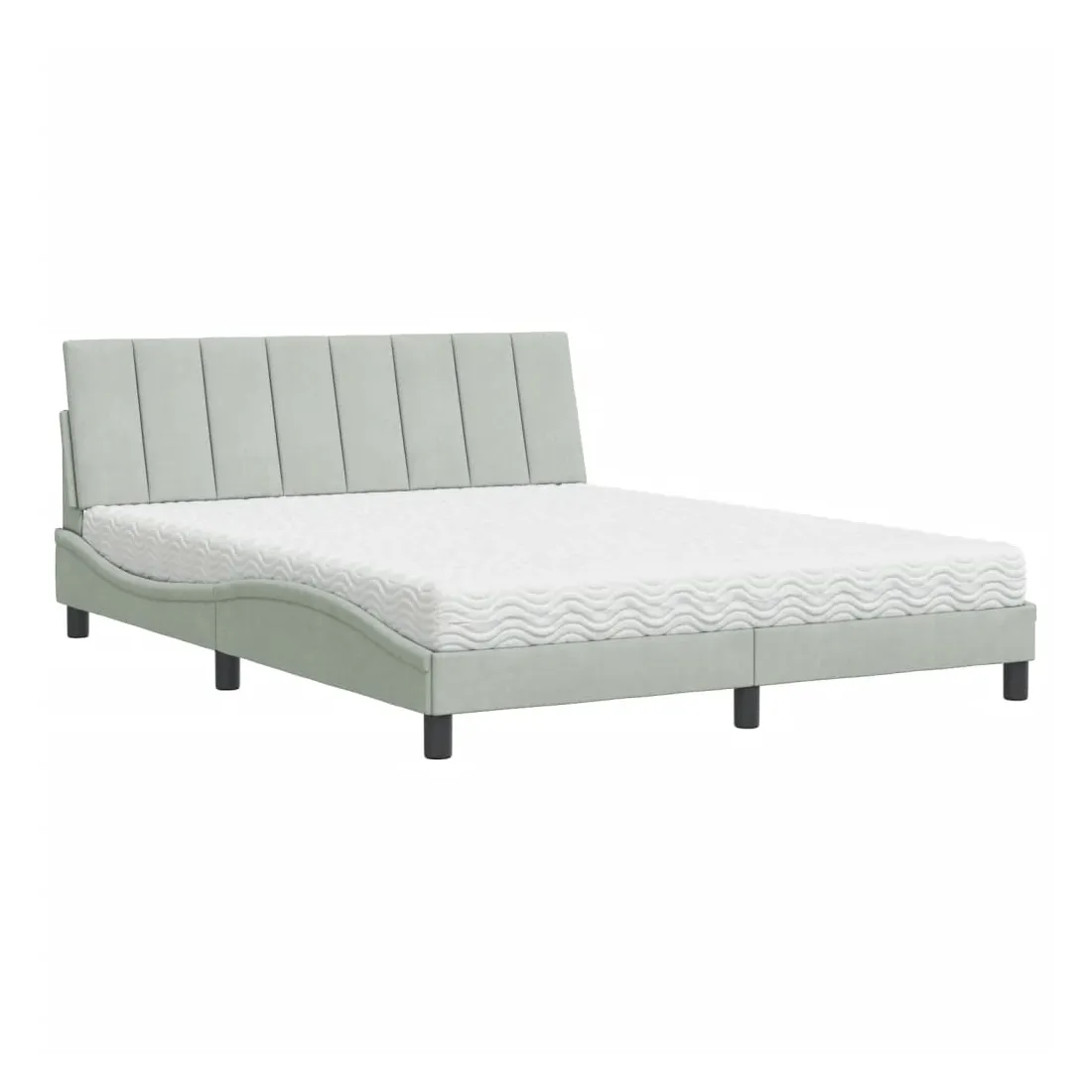 Obtenez une meilleure nuit de sommeil reposante grâce à ce lit avec matelas ! Il est un supplément accueillant à toute chambre à coucher. Velours doux : le velours est un tissu doux et confortable, agréable au toucher.Lattes de contreplaqué : les lattes de contreplaqué assurent une bonne répartition du poids, garantissant que le matelas reste en place à chaque torsion de votre corps pendant le sommeil.Excellent soutien : la tête de lit vous offre un excellent soutien du dos lorsque vous êtes assis dans votre lit pour lire ou regarder la télévision.Matelas en mousse : ce matelas de lit en tissu à 3 couches est rempli de mousse PU 22D pour un confort optimal. Il contribue à soulager la fatigue et à favoriser la circulation sanguine, vous offrant ainsi une relaxation complète et une bonne qualité de sommeil. En outre, le matelas est disponible en dureté H2 et H3, de sorte que vous pouvez simplement tourner le matelas pour choisir la dureté qui vous convient le mieux.Design latéral ondulé : l’aspect ondulé du cadre de lit est élégant et sophistiqué, ajoutant une touche moderne et élégante à votre décor, ce qui en fait le point central de votre chambre à coucher.