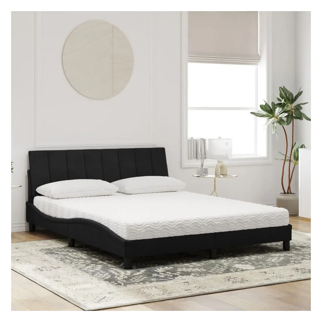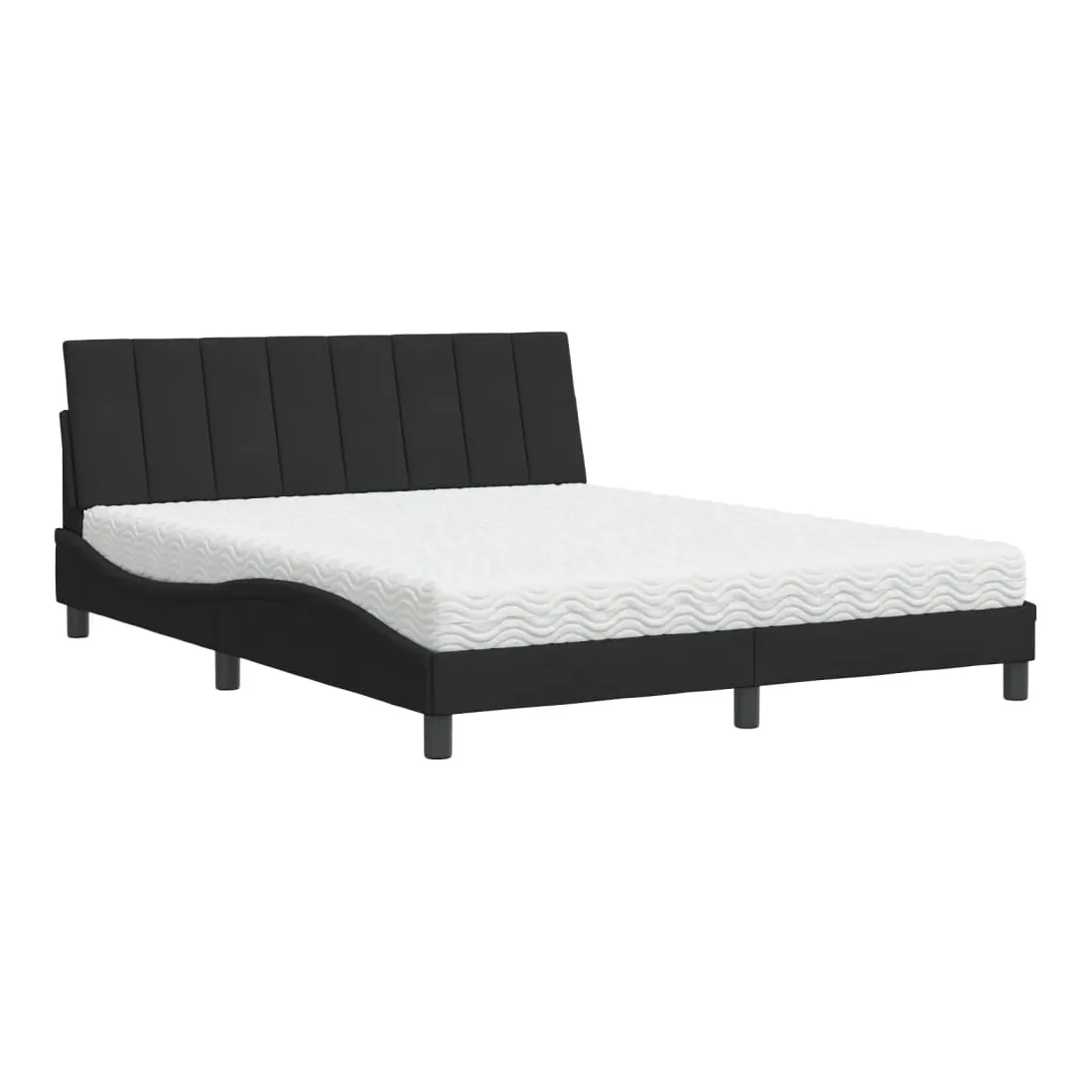 Obtenez une meilleure nuit de sommeil reposante grâce à ce lit avec matelas ! Il est un supplément accueillant à toute chambre à coucher. Velours doux : le velours est un tissu doux et confortable, agréable au toucher.Lattes de contreplaqué : les lattes de contreplaqué assurent une bonne répartition du poids, garantissant que le matelas reste en place à chaque torsion de votre corps pendant le sommeil.Excellent soutien : la tête de lit vous offre un excellent soutien du dos lorsque vous êtes assis dans votre lit pour lire ou regarder la télévision.Matelas en mousse : ce matelas de lit en tissu à 3 couches est rempli de mousse PU 22D pour un confort optimal. Il contribue à soulager la fatigue et à favoriser la circulation sanguine, vous offrant ainsi une relaxation complète et une bonne qualité de sommeil. En outre, le matelas est disponible en dureté H2 et H3, de sorte que vous pouvez simplement tourner le matelas pour choisir la dureté qui vous convient le mieux.Design latéral ondulé : l’aspect ondulé du cadre de lit est élégant et sophistiqué, ajoutant une touche moderne et élégante à votre décor, ce qui en fait le point central de votre chambre à coucher.