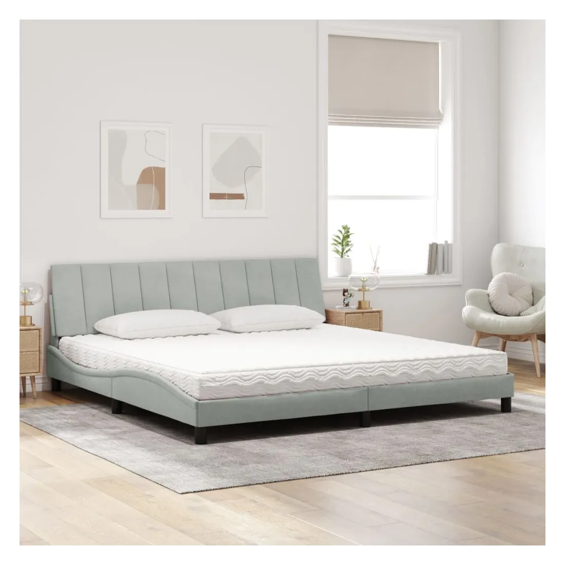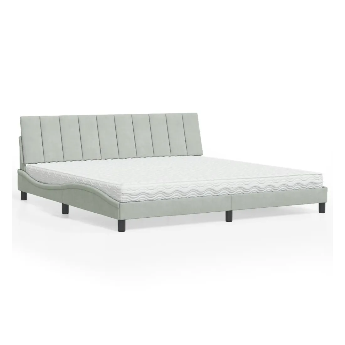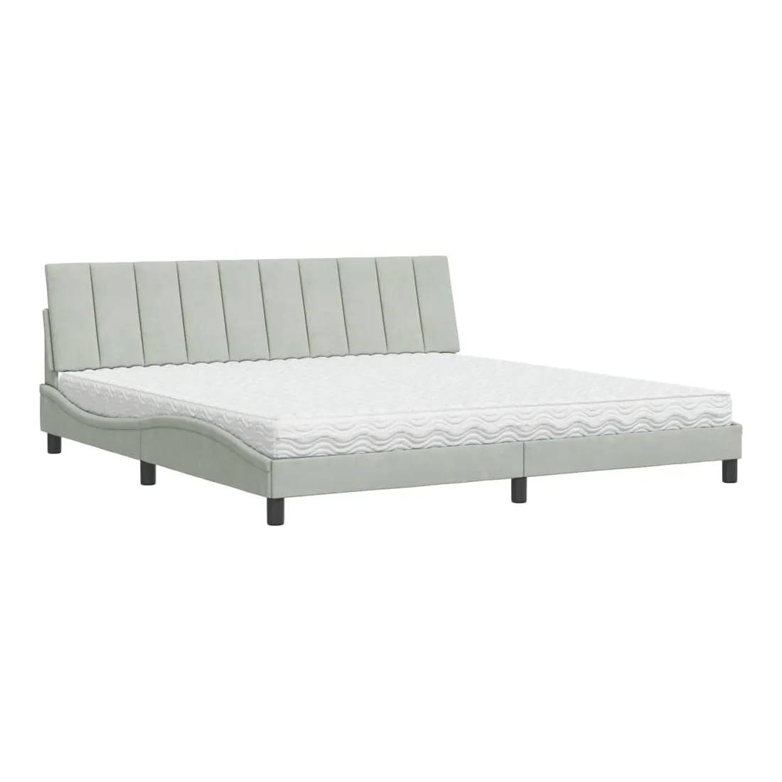 Obtenez une meilleure nuit de sommeil reposante grâce à ce lit avec matelas ! Il est un supplément accueillant à toute chambre à coucher. Velours doux : le velours est un tissu doux et confortable, agréable au toucher.Lattes de contreplaqué : les lattes de contreplaqué assurent une bonne répartition du poids, garantissant que le matelas reste en place à chaque torsion de votre corps pendant le sommeil.Excellent soutien : la tête de lit vous offre un excellent soutien du dos lorsque vous êtes assis dans votre lit pour lire ou regarder la télévision.Matelas en mousse : ce matelas de lit en tissu à 3 couches est rempli de mousse PU 22D pour un confort optimal. Il contribue à soulager la fatigue et à favoriser la circulation sanguine, vous offrant ainsi une relaxation complète et une bonne qualité de sommeil. En outre, le matelas est disponible en dureté H2 et H3, de sorte que vous pouvez simplement tourner le matelas pour choisir la dureté qui vous convient le mieux.Design latéral ondulé : l’aspect ondulé du cadre de lit est élégant et sophistiqué, ajoutant une touche moderne et élégante à votre décor, ce qui en fait le point central de votre chambre à coucher.